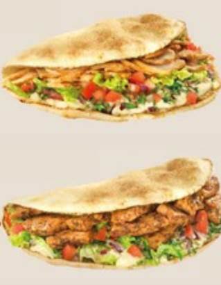 - Pita Bread, Poultry-Veal Émincé, Lettuce, Red Onions, Tomatoes, Coriander and a Choice of Sauce : Humus or Pepper Caviar