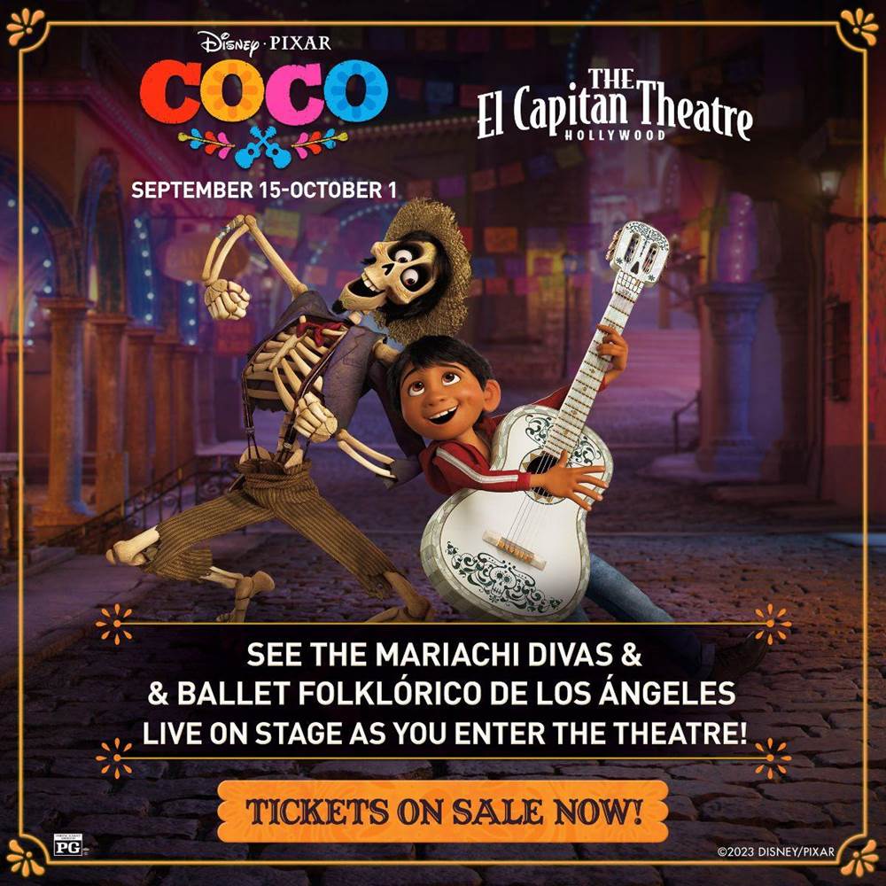 The El Capitan Theatre will be continuing their Disney100 celebration with the sixth of eight classic films in their special engagement: Disney-Pixar’s Coco.