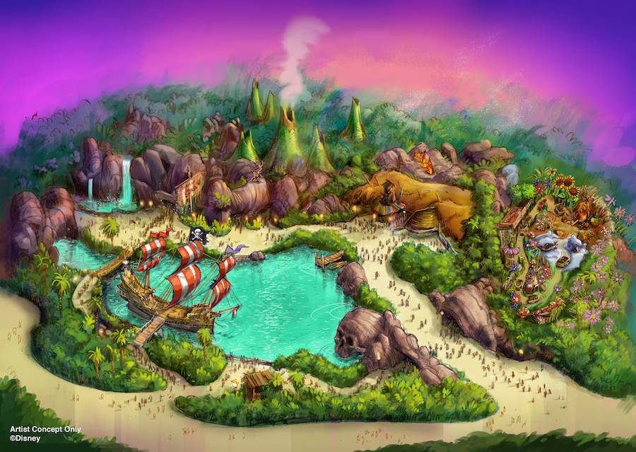 - In Peter Pan’s Never Land, guests can explore a pirate ship, dine in a secret hideaway, or go on a great adventure with their friends as they encounter pirates. In the attraction Peter Pan’s Never Land Adventure, guests join the Lost Kids, a group of fun-loving and adventurous children, and explore Never Land with Peter Pan and Tinker Bell to rescue John from Captain Hook and his band of pirates.