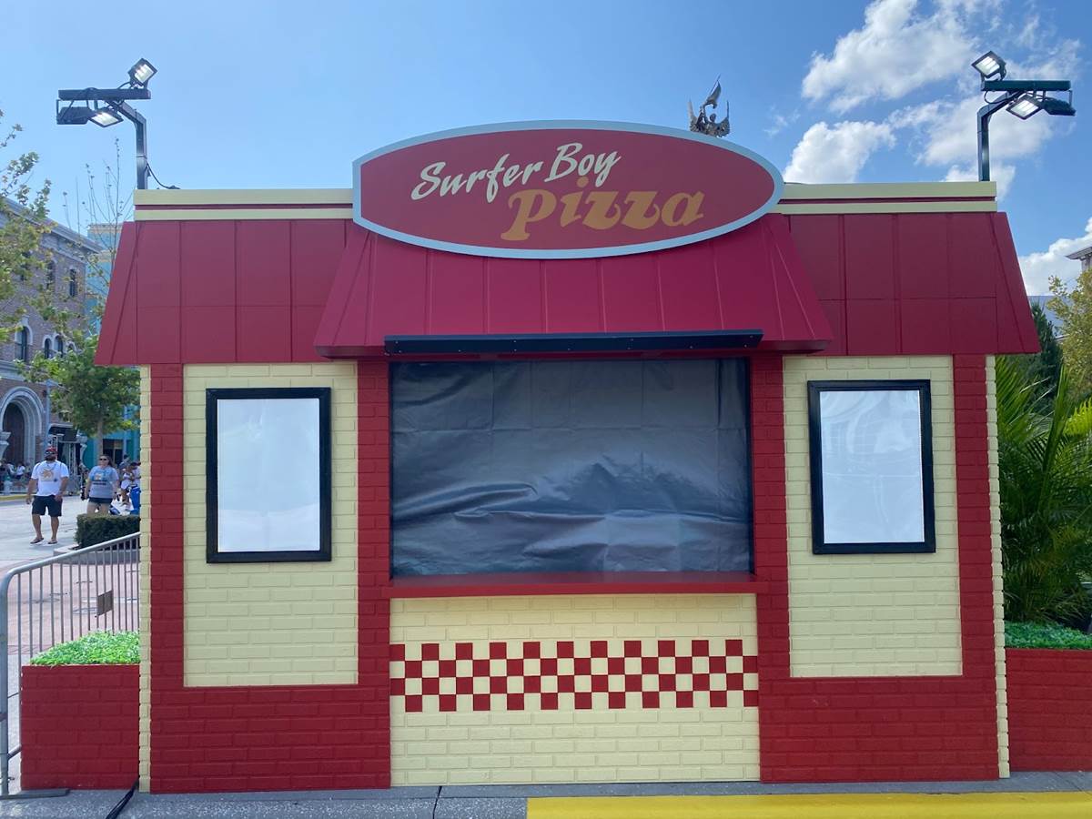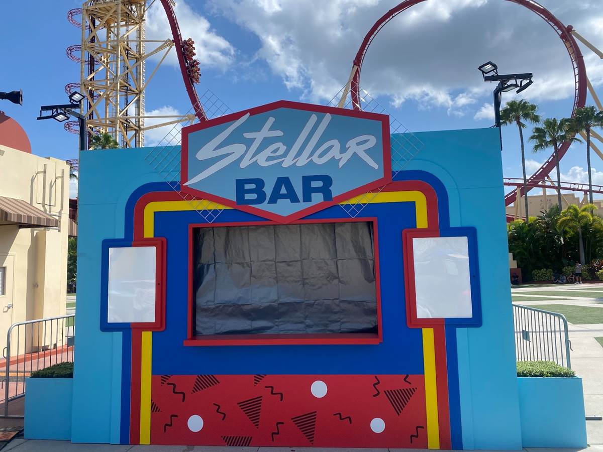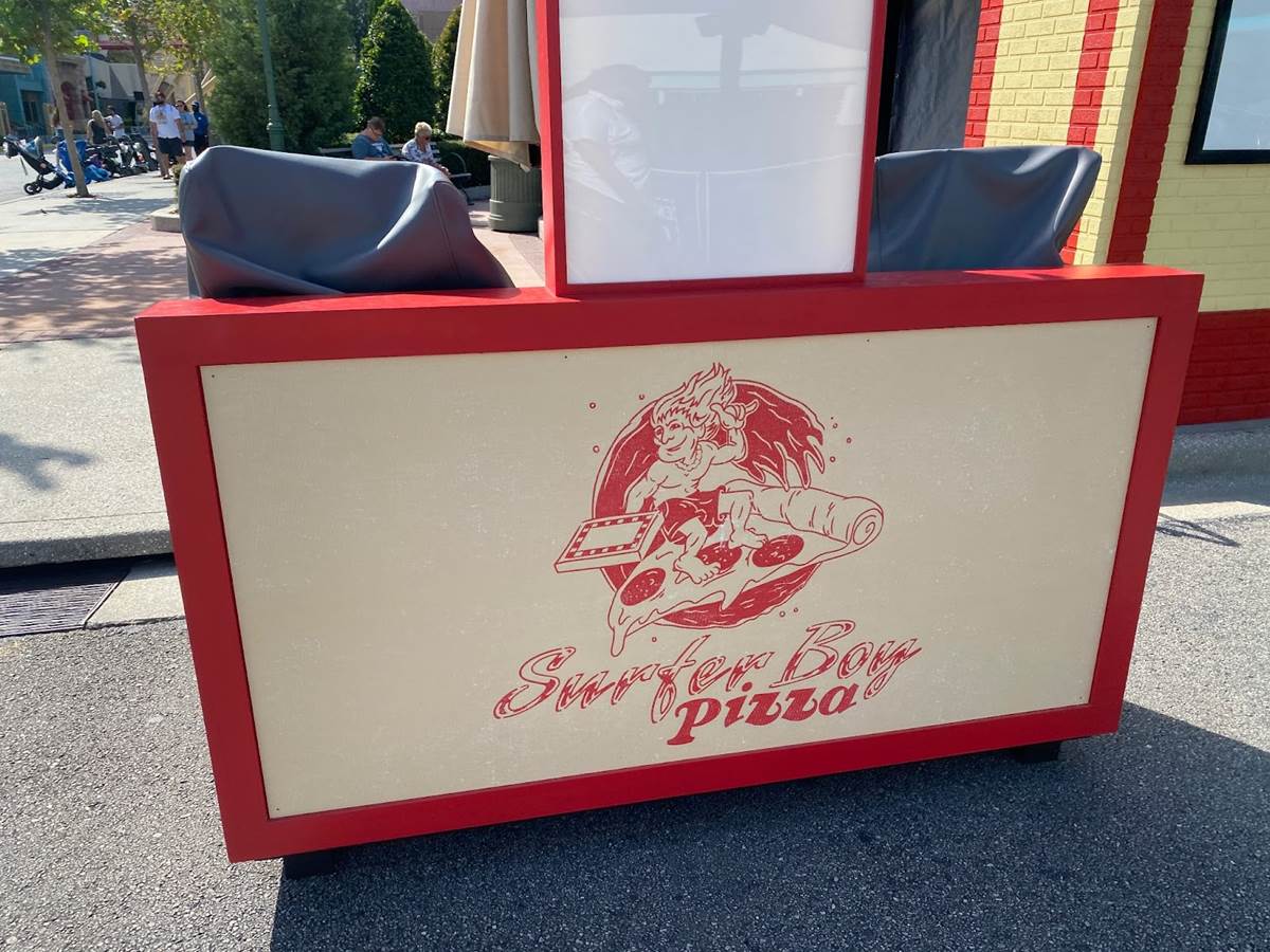 Seemingly all of the specialty food service booths have arrived at the park, with much of their theming installed. The very 80s-looking Stellar Bar has arrived in front of Music Plaza Stage. Nearby in New York, we have the Stranger Things-themed Surfer Boy Pizza and another booth themed to the original “Yeti: Campground Kills" house.