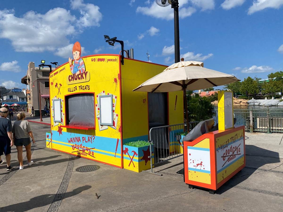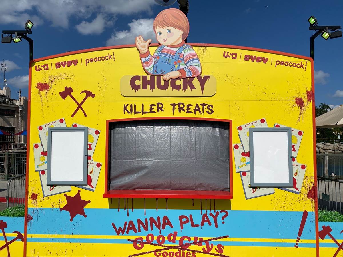 Just across from Fast & Furious – Supercharged, another food booth can be seen, this one themed to the “Chucky: Ultimate Kill Count" house. You can get a look at some of the food and beverage offerings that will be found at these booths in our recap of the recent “Taste of Terror" event preview.