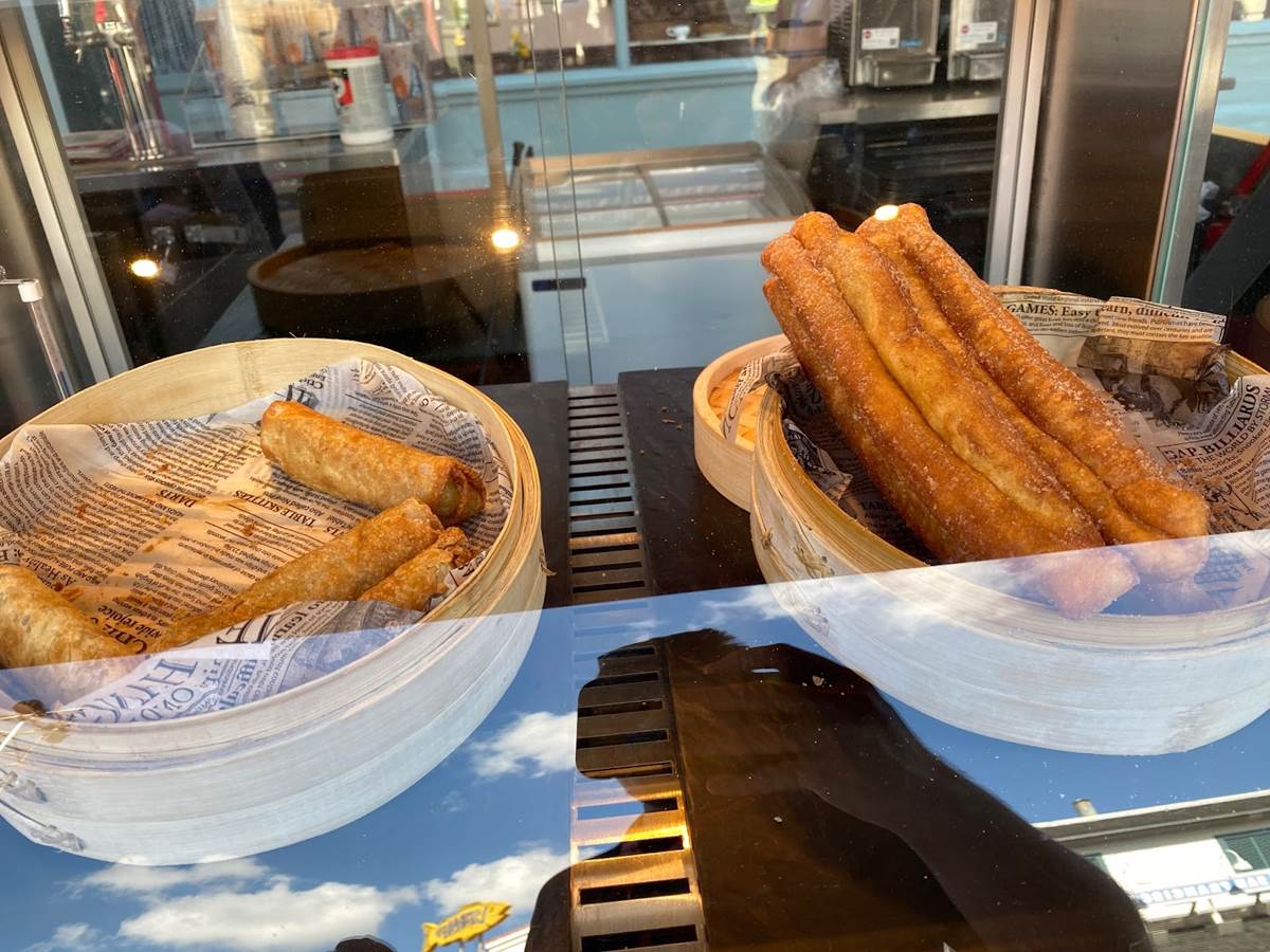 - The menu is simple, offering Vegetable Egg Rolls, a Cantonese Cinnamon Sugar Donut Stick and an Asian Chopped Salad. You’ll also find some alcoholic beverages, in addition to two specialty boba drinks.