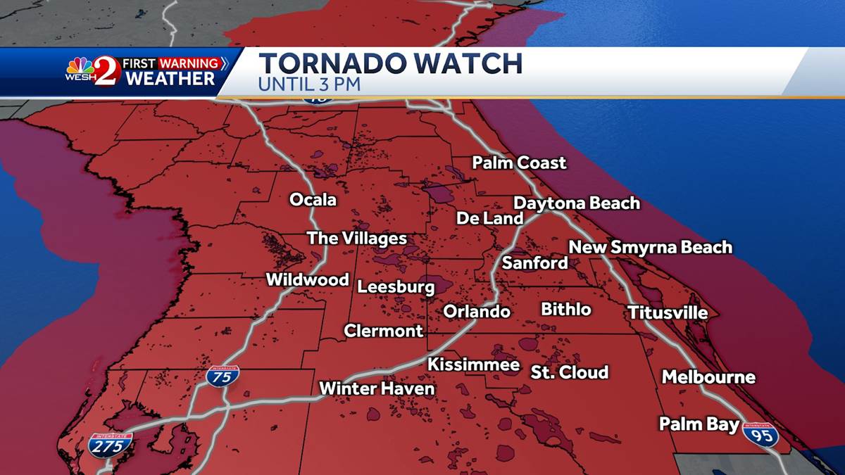 - A tornado watch is currently in effect for Marion, Lake, Orange, Osceola, Seminole, Volusia, Brevard, Polk, Sumter, and Flagler counties, according to the National Weather Service.