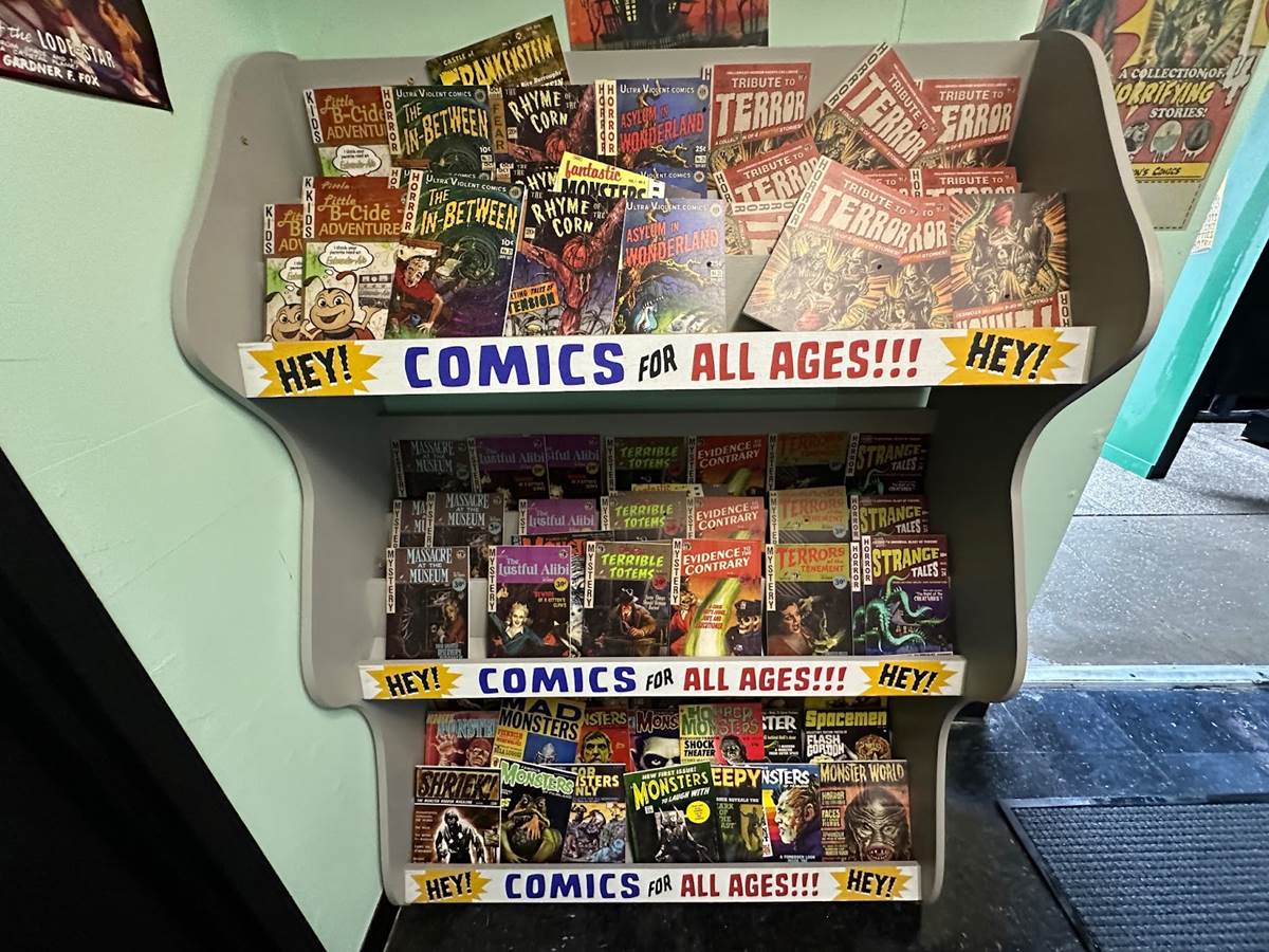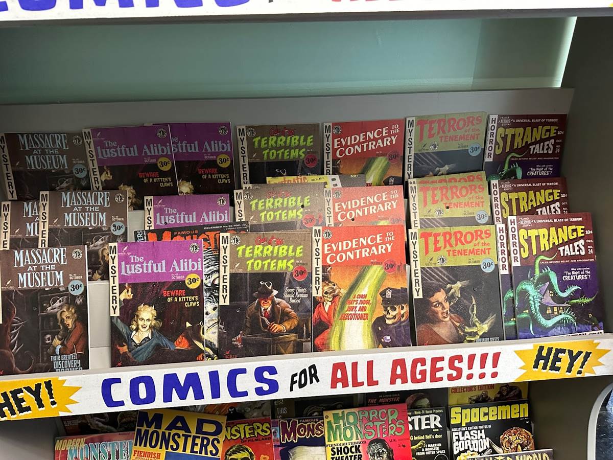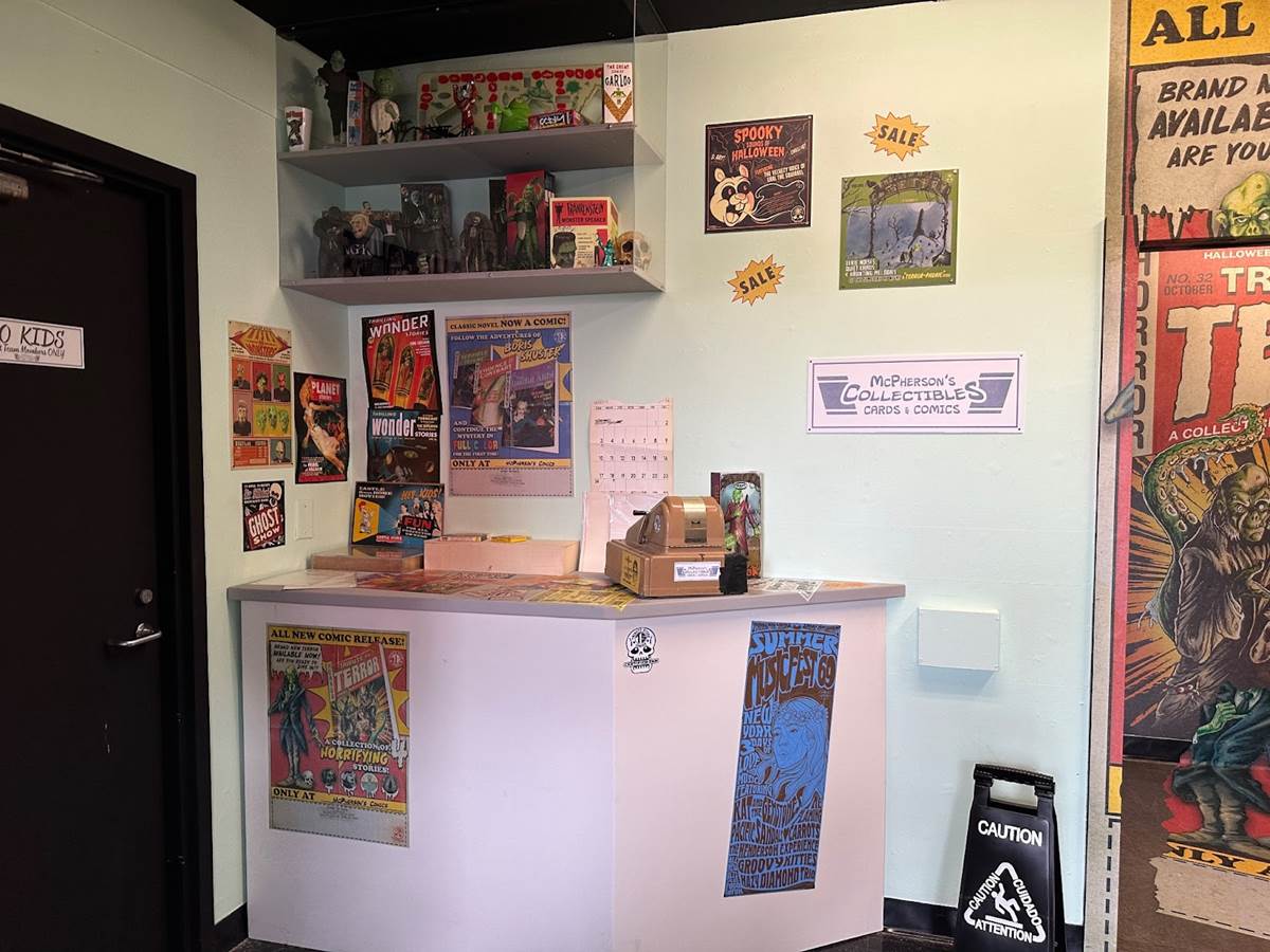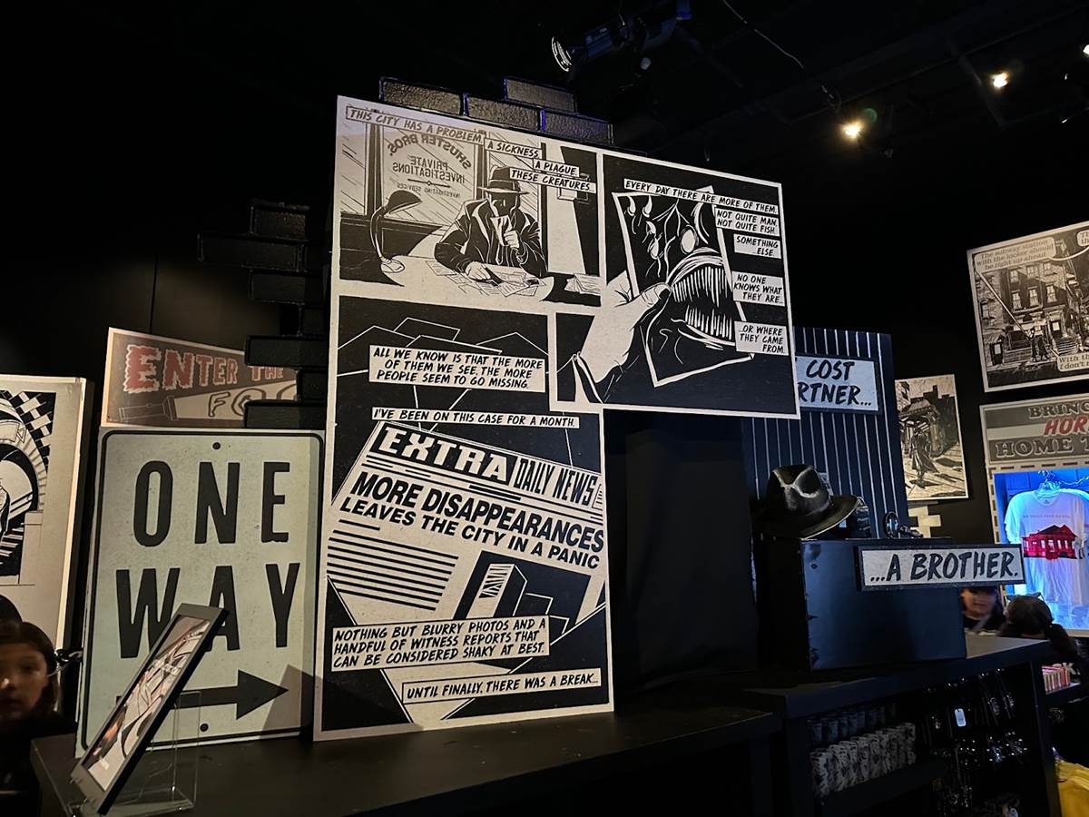 As we head inside the Tribute Store, the comic theme is immediately on full display, with the entry room themed as a comic book store called McPherson’s Collectibles.