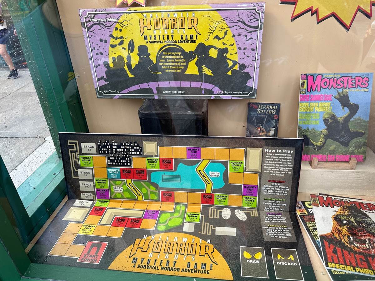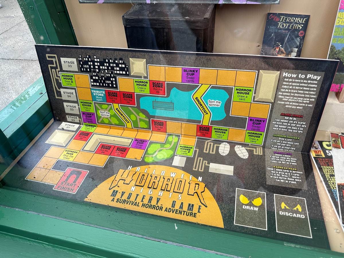 Plenty of fun easter eggs can be found in the two shop windows, including references to the beloved Earl the Squirrel and this fun Horror Nights-themed board game.