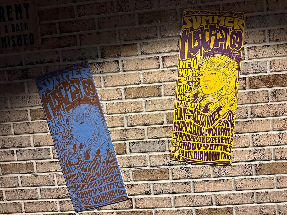 As guests exit the Tribute Store, they are greeted by some posters for the scare zone located right outside, “Vamp ‘69: Summer of Blood."