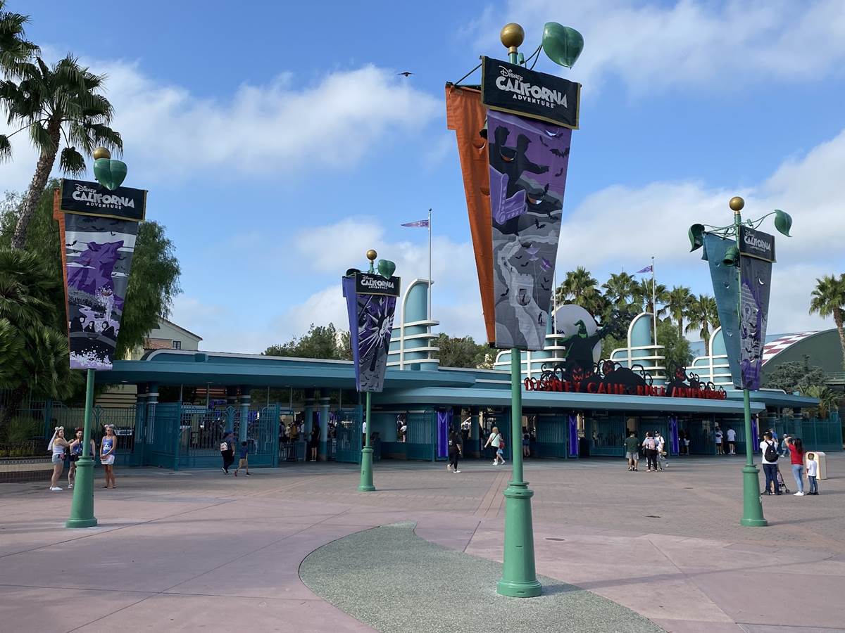The fun banners featuring bats have returned, as has the giant Oogie Boogie Silhouette above the entrance of Disney California Adventure. Once inside the gates, guests will find the classic purple and bats aesthetic that they have come to love on Buena Vista Street in recent years.