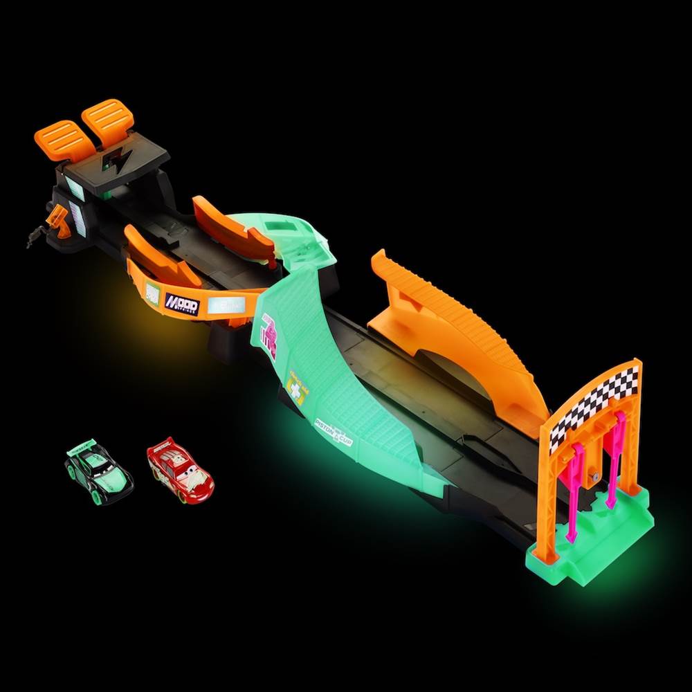 - Includes Lightning McQueen and Jackson Storm Glow Racers vehicles