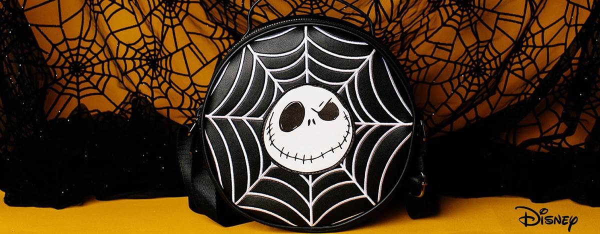 Keep your cards and cash handy in the cute wallet featuring Disney Villains and Hocus Pocus’ Thackery Binx. For something a bit more substantial, opt for the Jack Skellington Spider Web bag.