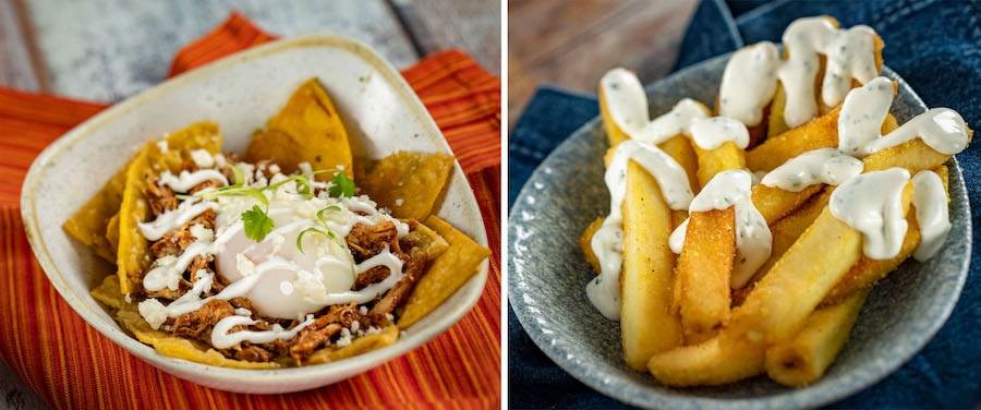 - Chilaquiles: Corn tortilla chips tossed in salsa verde with ranchero chicken, queso fresco, cilantro-lime crema, and a soft-poached egg (New) (Gluten/ Wheat Friendly)