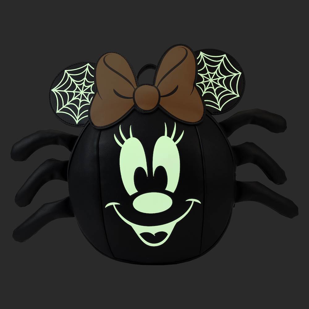 Spider Minnie Mouse is all the rage and this spooktacular spider-shaped accessory has a round, domed front. Minnie’s orange bow complements the sleek black-colored design, rises up over the top, and her spider legs stick out—four on each side. Did we mention that her face and spider webs glow?