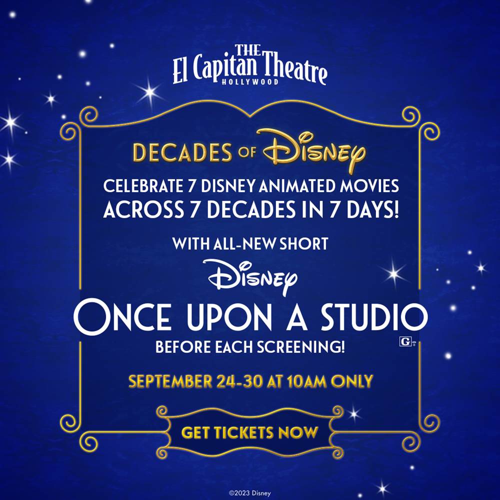 The El Capitan Theatre in Hollywood will be celebrating seven Disney animated classics across seven days, with the all-new short Once Upon a Studio playing before each screening.