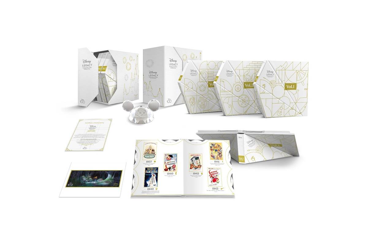- The set includes 100 animated titles on Blu-ray, digital codes for each title, features the original theatrical poster art, a collectible lithograph from Disney Animation’s all-new musical comedy Wish, and a collectible crystal Mickey ears hat with exclusive Disney100 engraving.