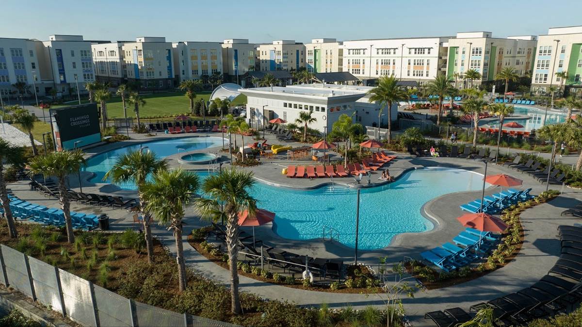 - Owned and operated by American Campus Communities, this community features special amenities like resort-style pools, a 12,500 sq. ft. fitness center, expansive Community Centers and educational facilities. Participants will also find touches of Disney magic sprinkled throughout the community.