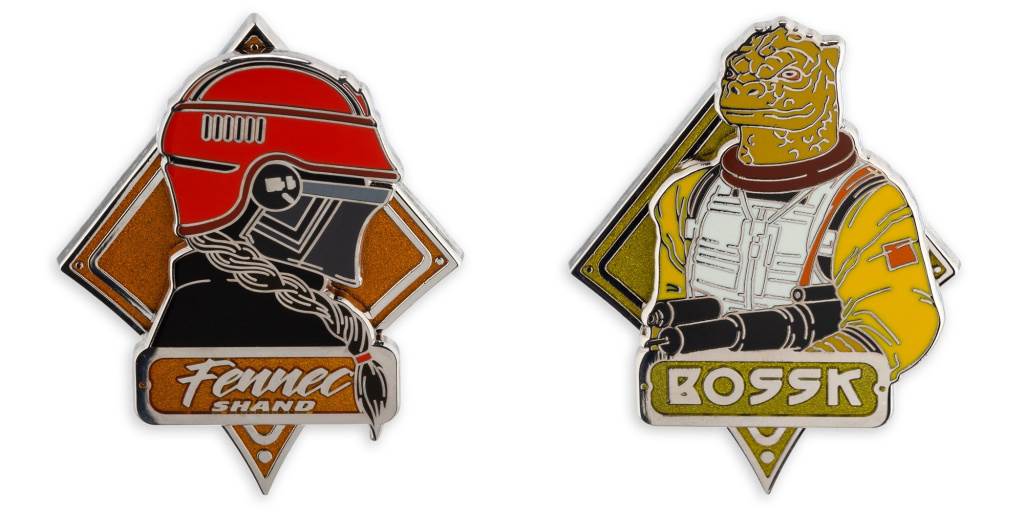 - The collection features five character pins spotlighting Bossk, Boba Fett, Din Djarin, Fennec Shand and Cad Bane.