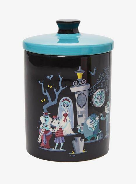 Finished snacking? Store your cookies in a fantastic cookie jar like this figural Poison Apple design for Snow White or the classic tall jar with adorable images of the Haunted Mansion residents.