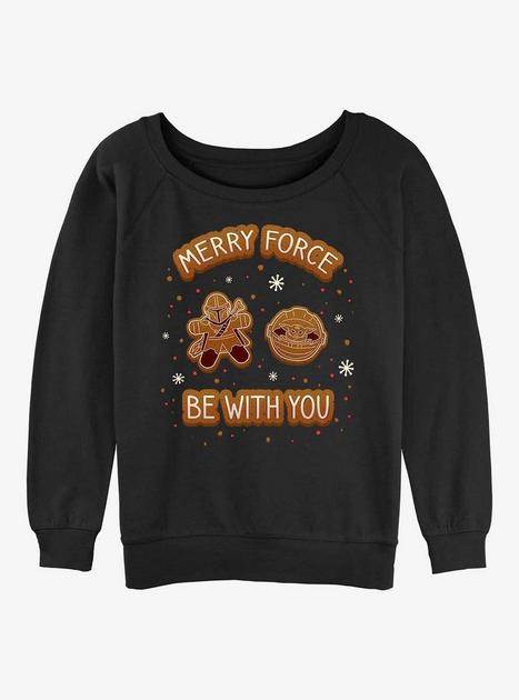 Star Wars The Mandalorian Merry Force Gingerbread Cookie Womens Slouchy Sweatshirt - BLACK