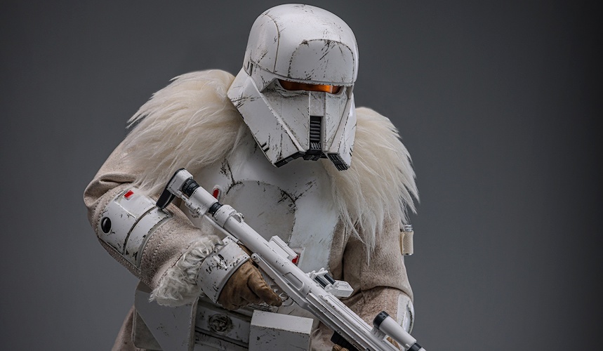 Range Troopers’ one and only live-action appearance to date was in their debut in 2018’s Solo during that film’s big train robbery sequence. Described as among the toughest of the many Imperial Stormtrooper subgroups, the Range Troopers visually stood out thanks to the fur worn over their armor and their heavy-duty magnetic boots. A Range Trooper Hot Toys figure was teased years ago but never officially announced until now.
