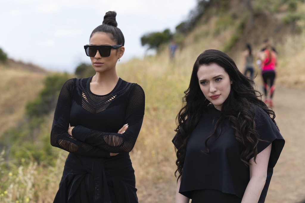 Dollface -- "Fun Friend" - Episode 104 -- The girls wrestle with their personal “brands” as Jules and Stella take on being the “boring one” and the “fun one”. Madison, the “bossy one," helps Izzy “the crazy one," shed her fake identity. Stella (Shay Mitchell) and Jules (Kat Dennings), shown. (Photo by: Aaron Epstein/Hulu)