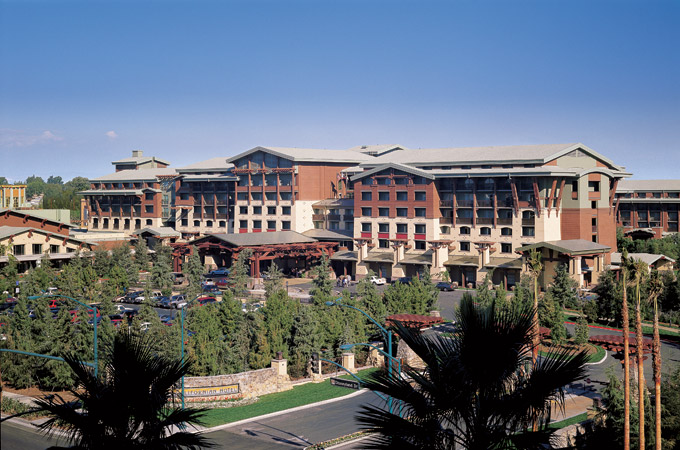 1019 Guest Rooms including 40 suites and 71 villas All rooms non-smoking All buildings offer elevators and stairs with interior corridorsResort Features: Disney's Grand Californian has two of the best restaurants at the Disneyland Resort, a luxurious spa, themed feature pool with waterslide and two quiet pools, and 24-hour room service access. It also has its own special entrance to Disney California Adventure park and is a short walk to the main entrance to Disneyland. Standard room amenities: Business Center, Convention/Meeting Space, Valet Parking, Wi-Fi wireless internet, Grizzly Game Arcade, Health Club, Sauna, Mandara Spa