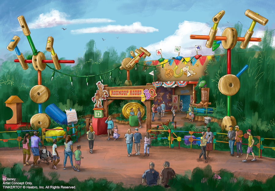 A new table service dining location called Roundup Rodeo BBQ would be coming to Toy Story Land. The new restaurant will continue the theme of guests shrinking down to the size of a toy and visiting Andy’s backyard. Roundup Rodeo BBQ is the result of Andy creating a rodeo arena using some of his prized toys, games, and other play sets. The result is a colorful atmosphere filled with details. The restaurant will be an expansion of the land.