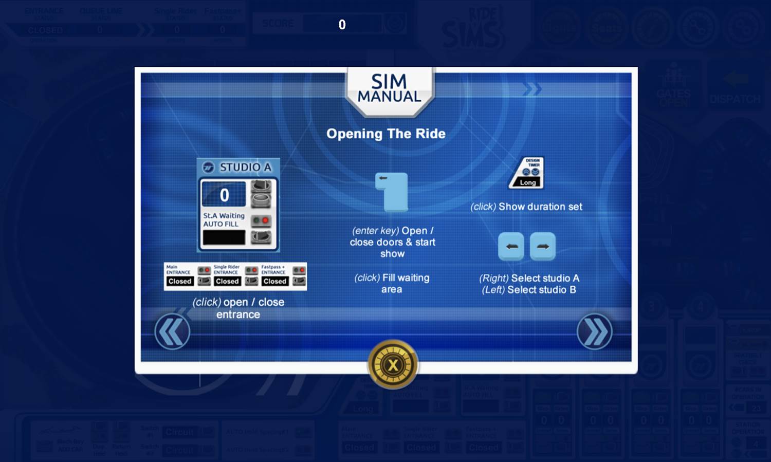 Let’s take a look at one of their Disney-inspired simulations. Their Unofficial Test Track 2.0 simulator opens with a simple set of controls on how to open the attraction.