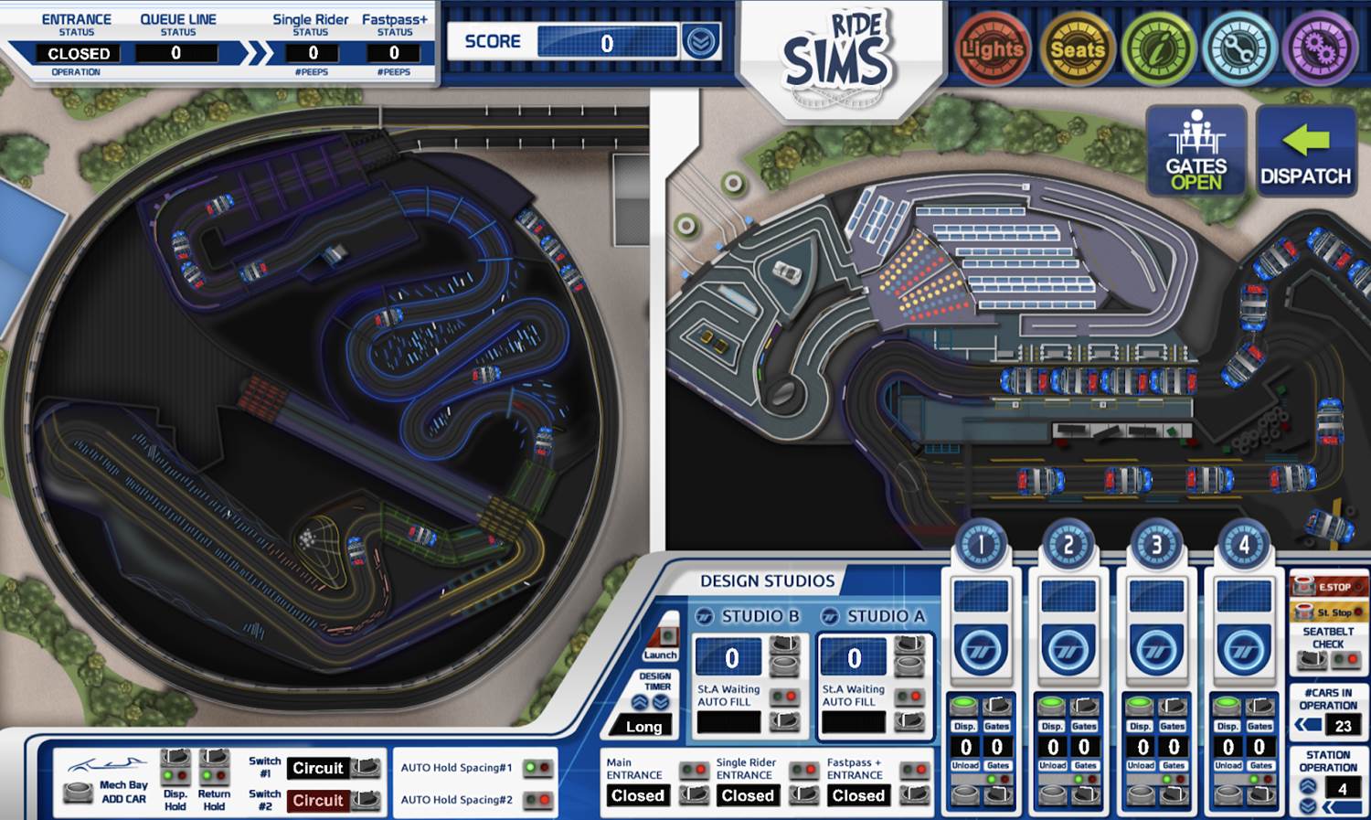 When entering the main screen of the sim, users will see an overview of the attraction, including guest counts, vehicles on track, load gate status, and dispatch status. Players can also adjust pre-show time based on the queue length. Flashing lights on your panel usually indicate an action that needs to be made to continue operating the attraction. You also control which queues are open to guests. In this case standby, Fastpass+, and single rider lines can all be toggled to your liking. It is an amazing challenge to balance all the responsibilities of an attraction, but after finding a rhythm it became almost as fun to play the simulation as it is to ride Test Track.