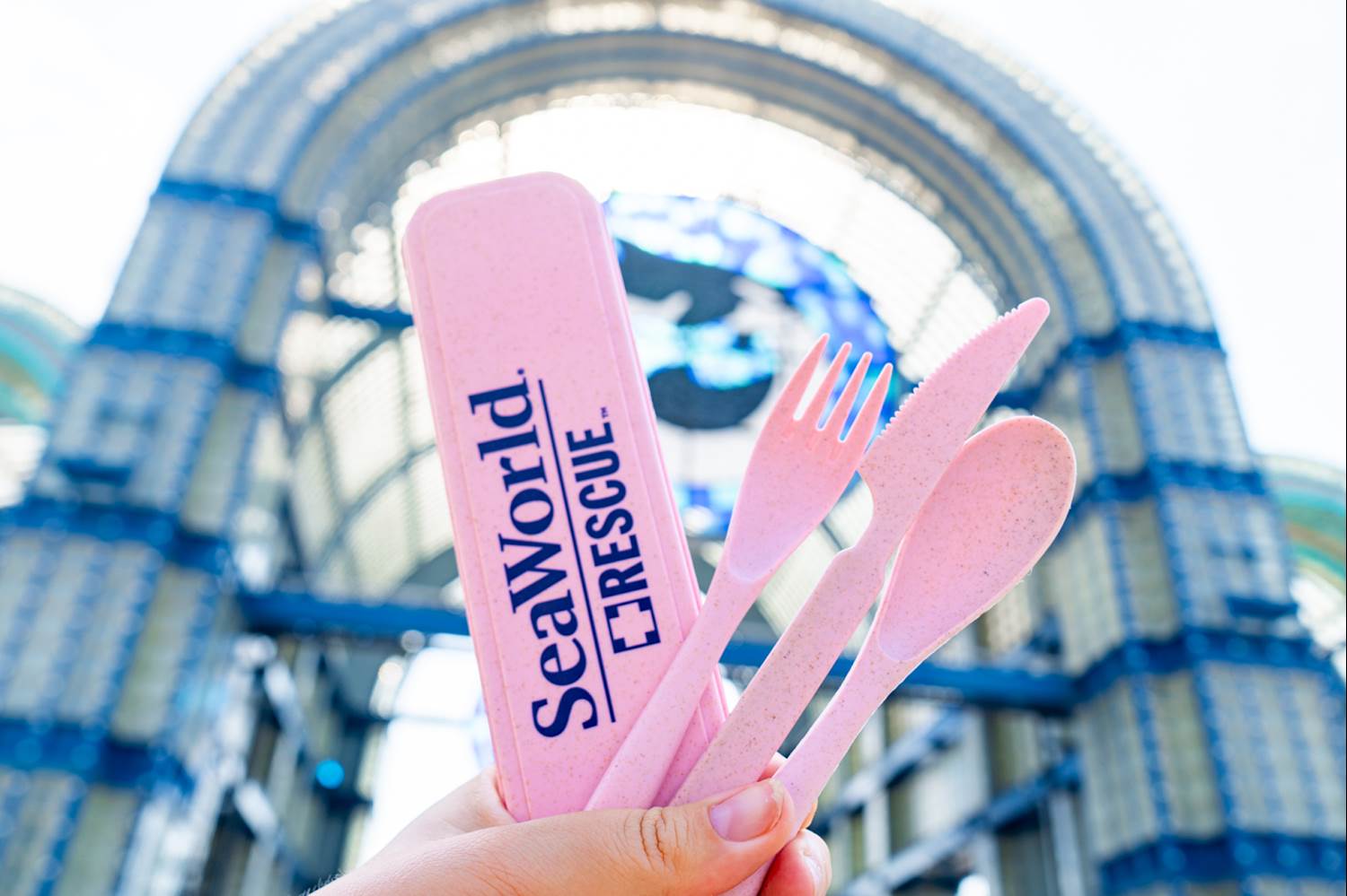 - In a continuation of their initiative to eliminate single use plastics, the reusable and biodegradable utensil set is the latest effort by the park to combat environmental contamination. SeaWorld was one of the first theme parks in the US to eliminate single-use plastic bags and straws.