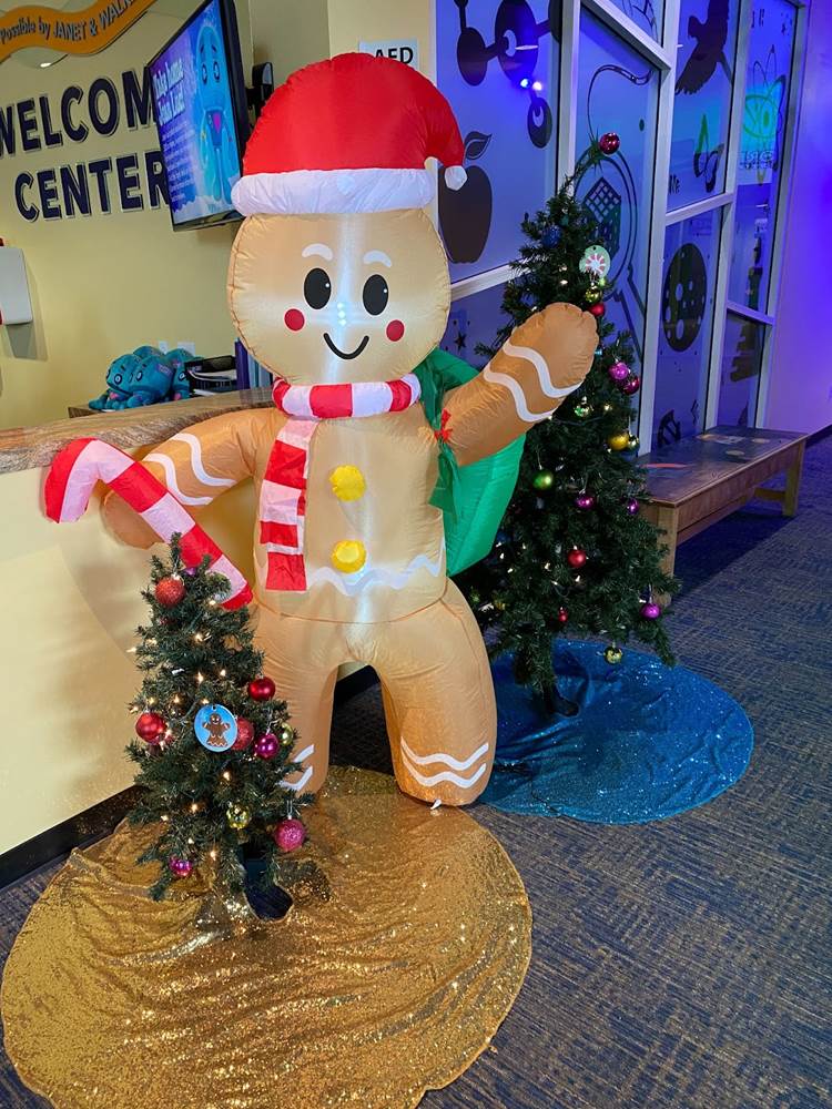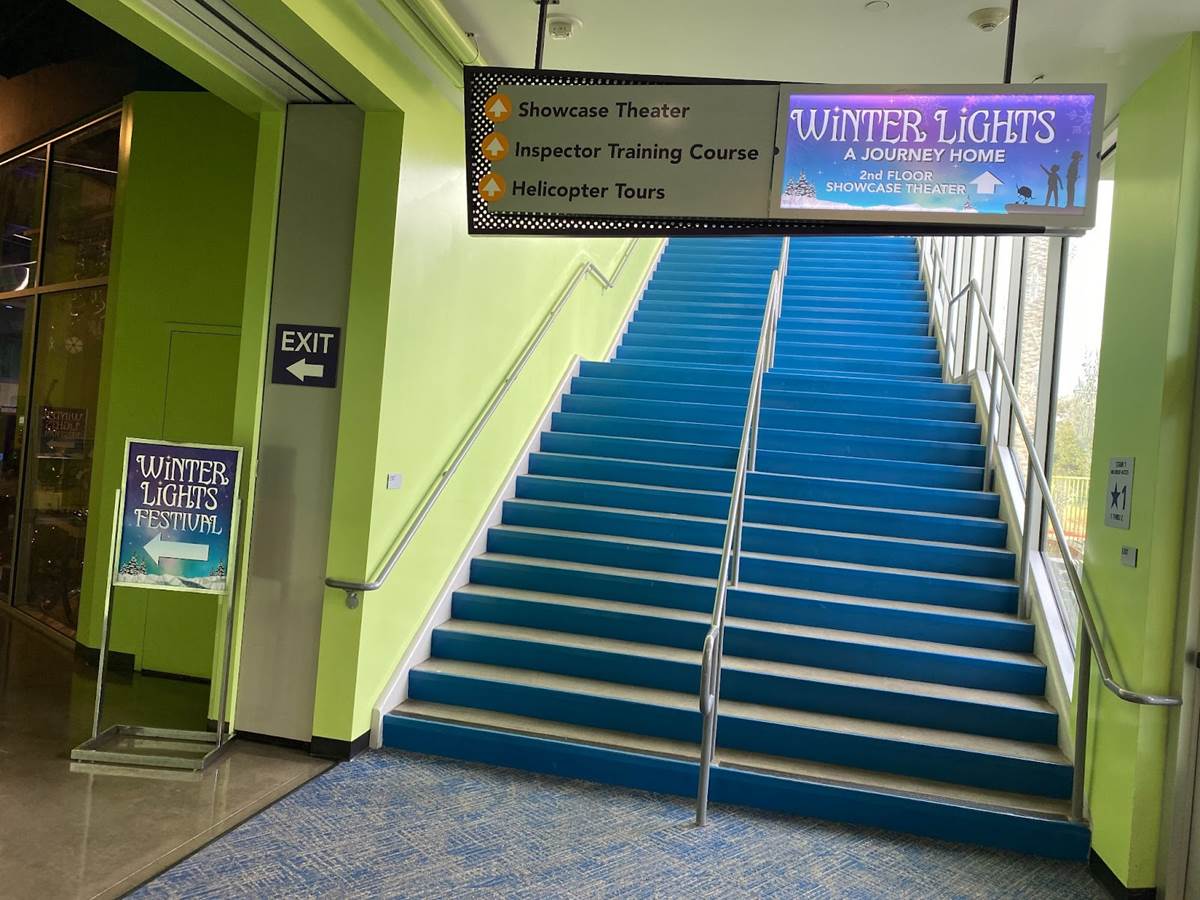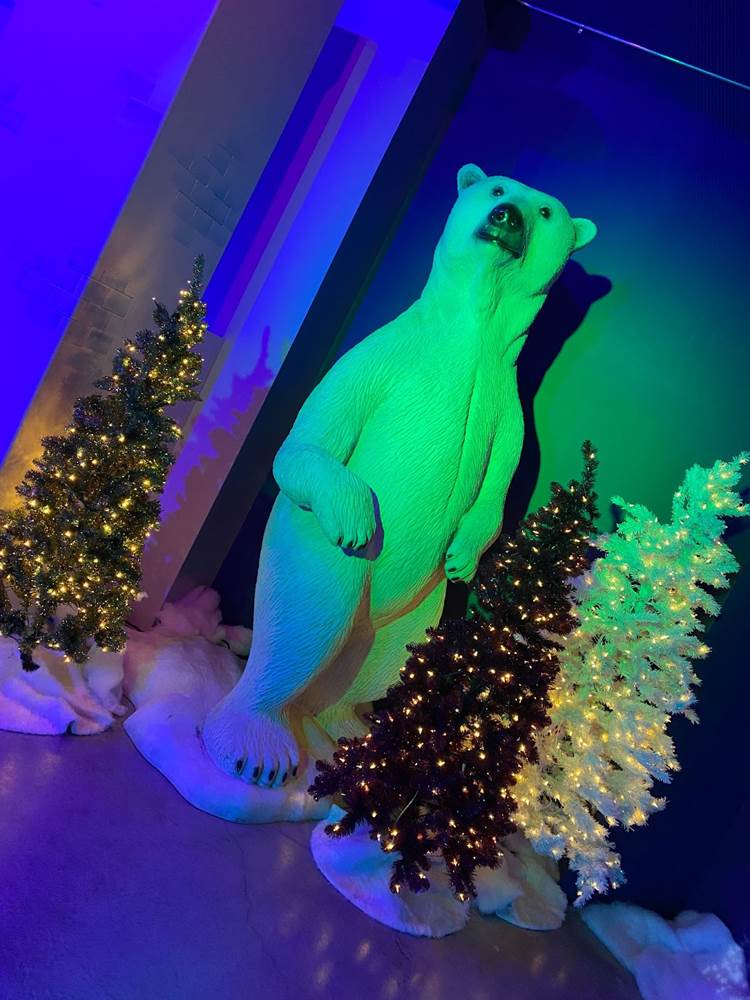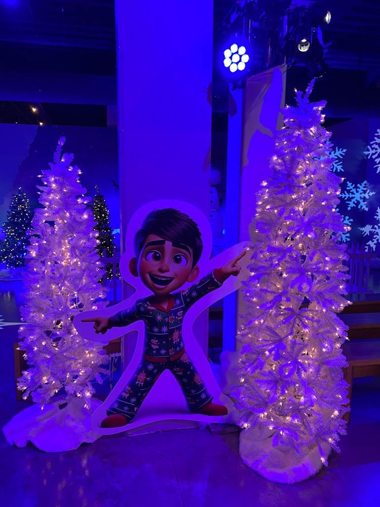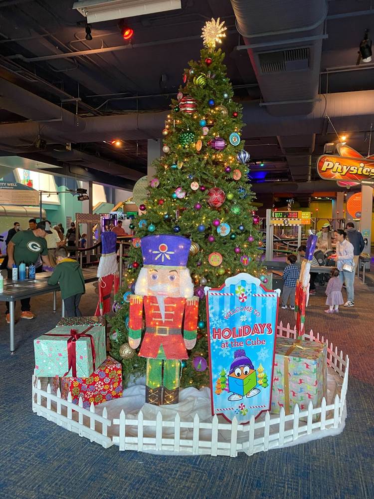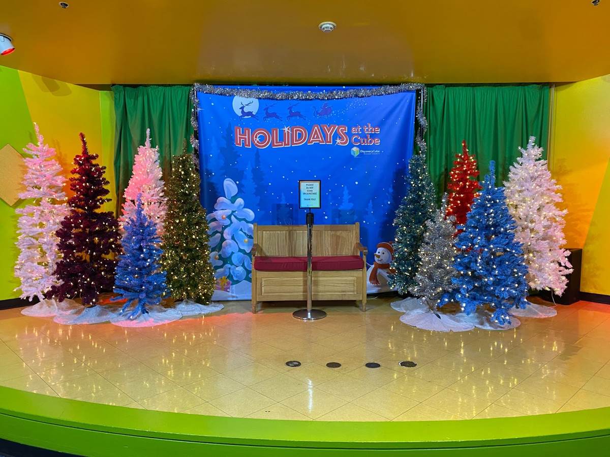 Below you can see photos of our approach to the Discovery Cube, the exterior of the building, the interior decor for the holiday season, and the area surrounding the Julianne Argyros Showcase theater. There’s also a small gift shop called “Aurora Storealis" where guests can pick up merchandise from the “Winter Lights" show and a cute little plush of Jean Luc.