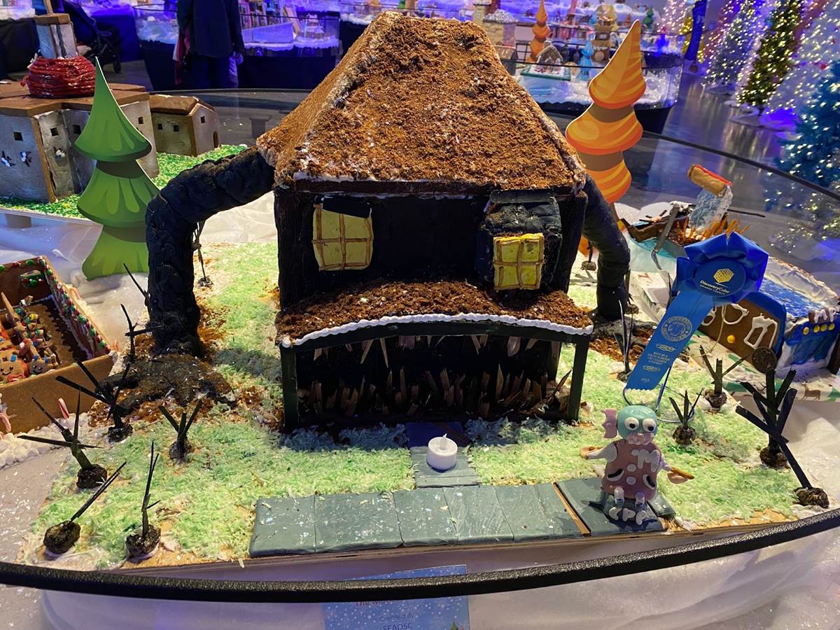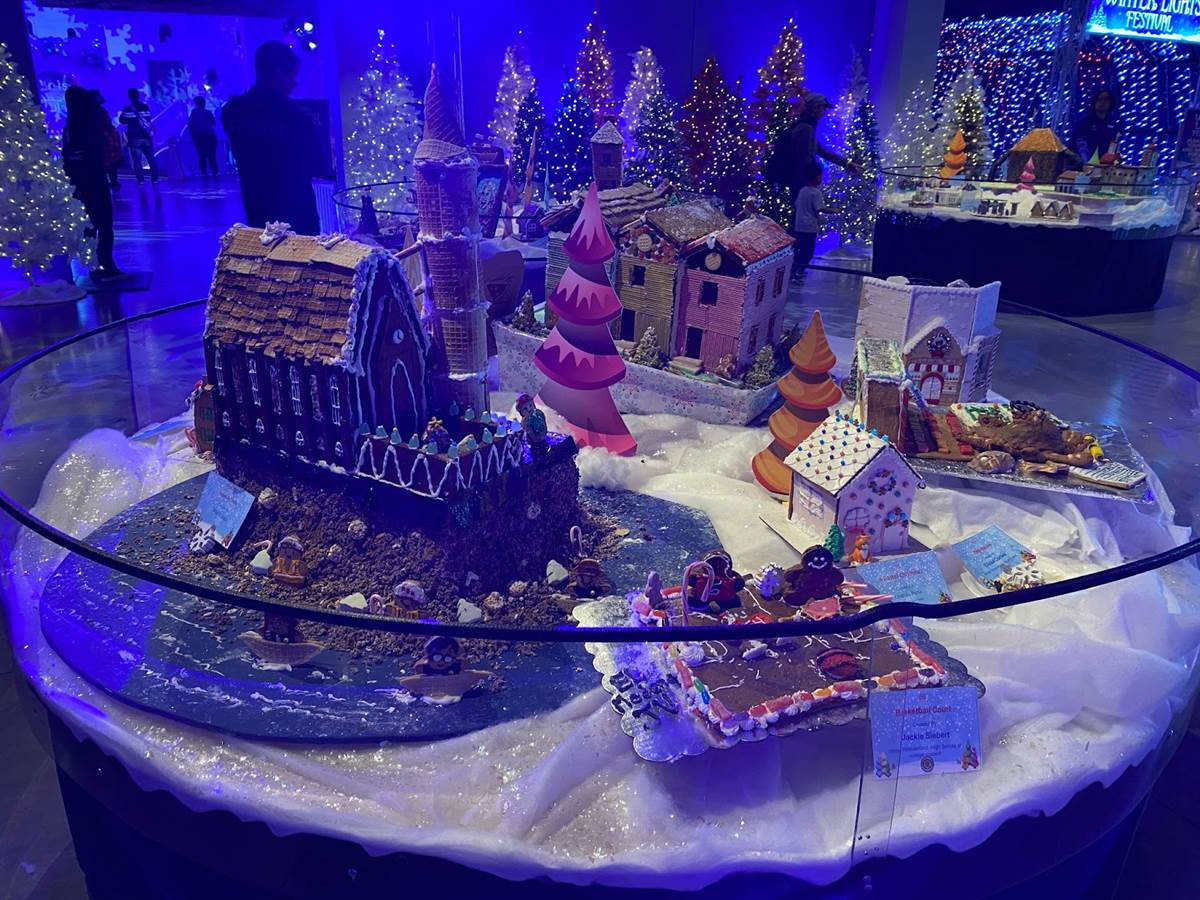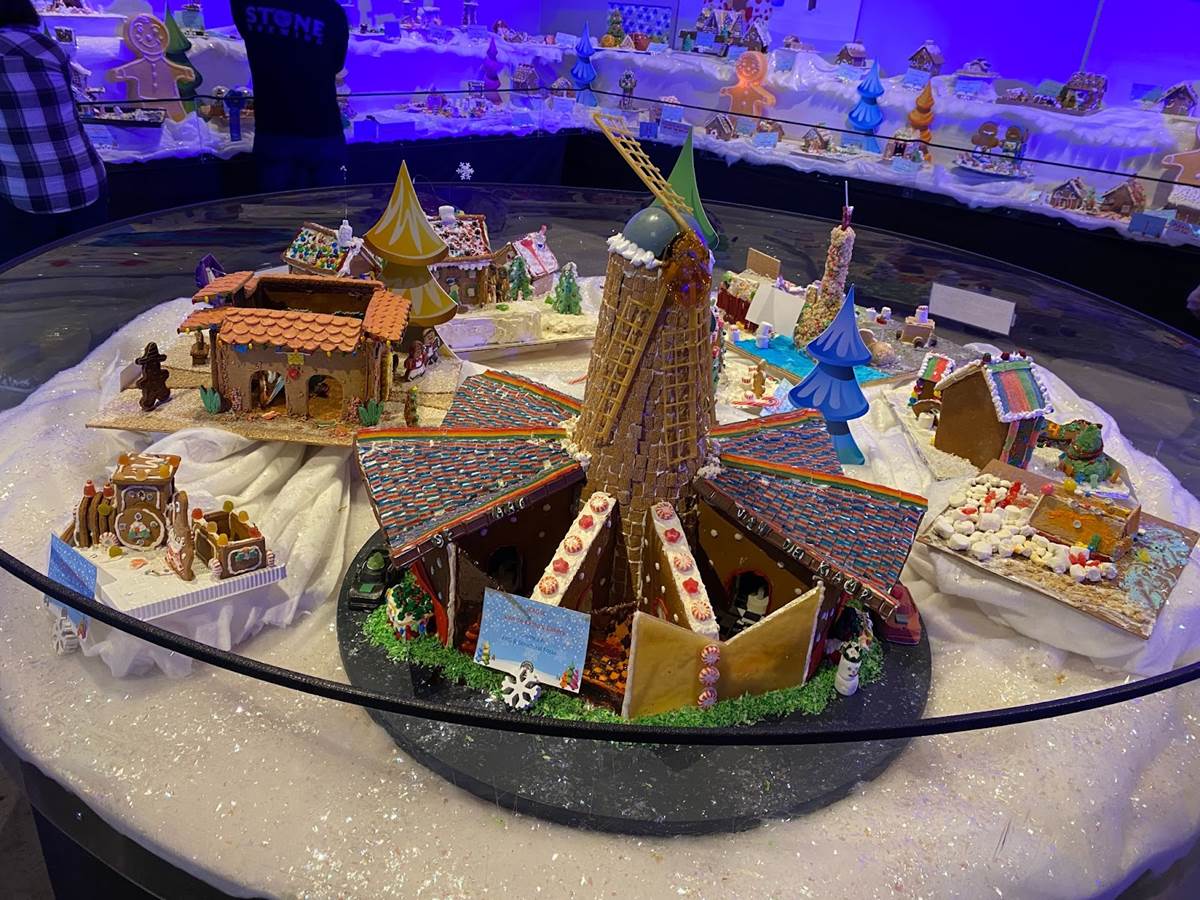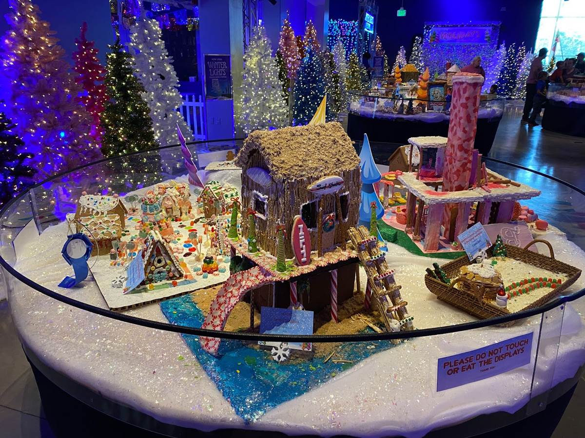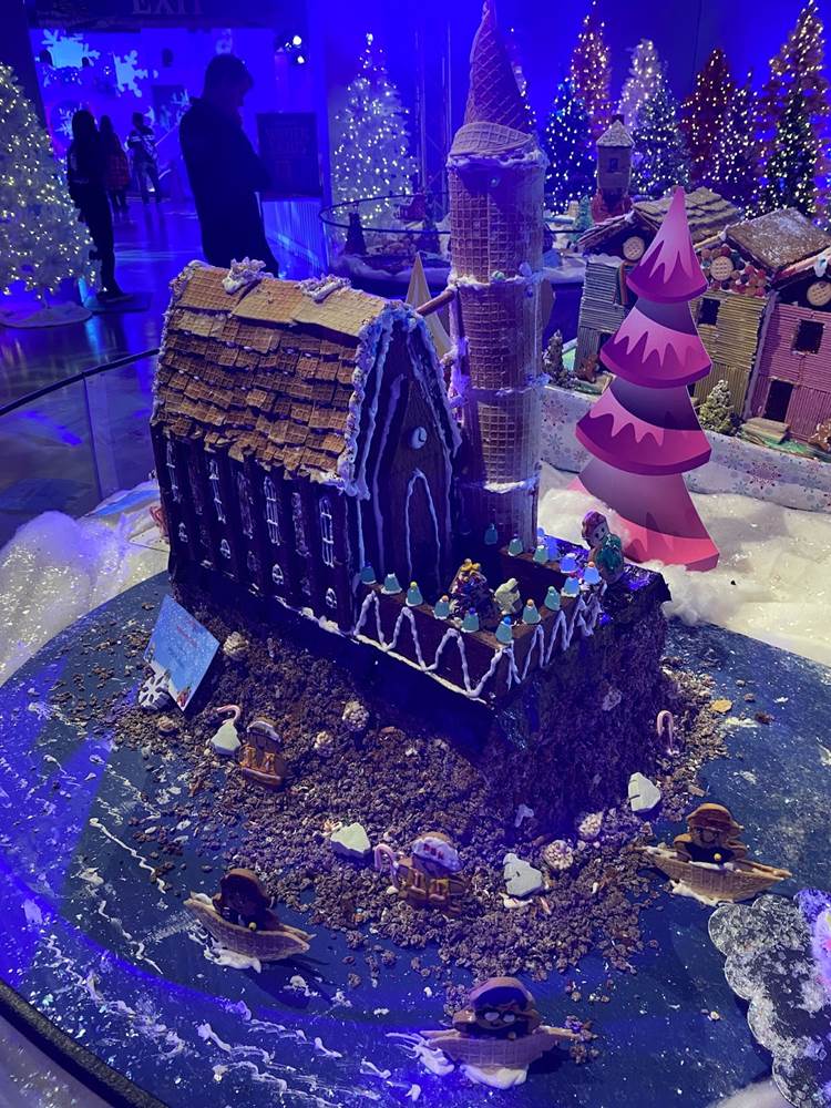 At that point we ventured back downstairs to check out the rest of the Winter Lights festival, which was adjacent to another seasonal exhibit called “The Science of Gingerbread." We got a big kick out of checking out all these amazing gingerbread house designs– there were even a few Disney-related entries!