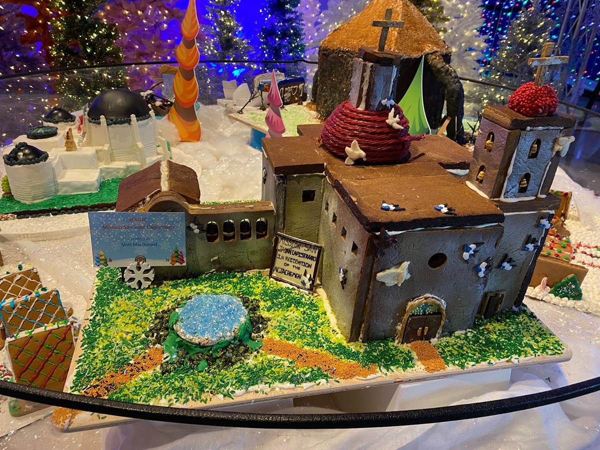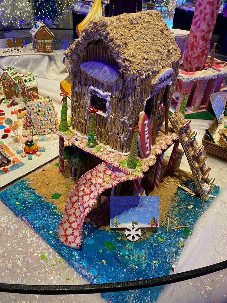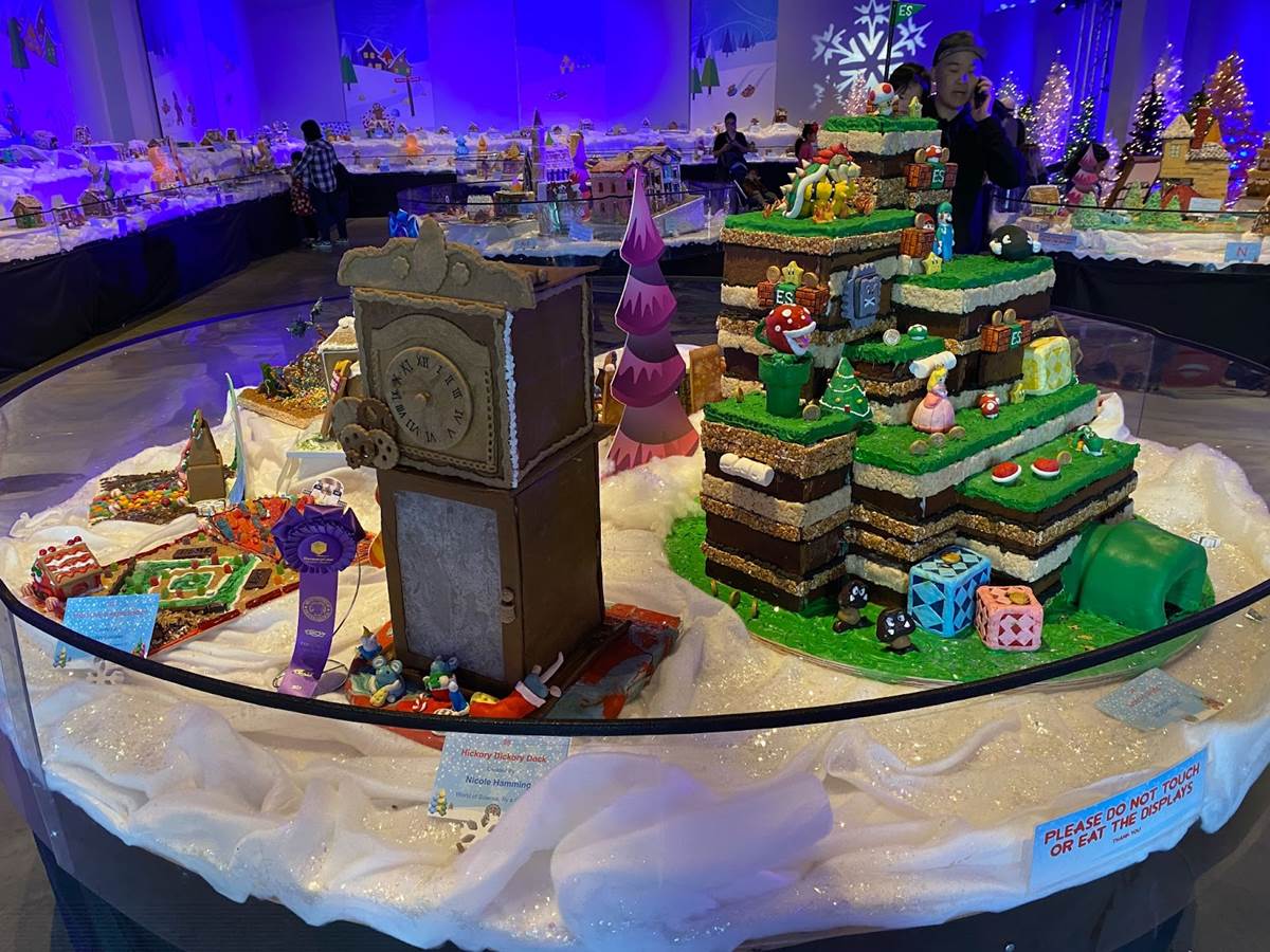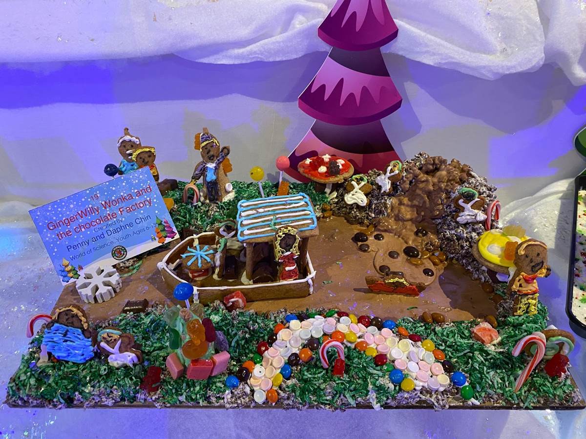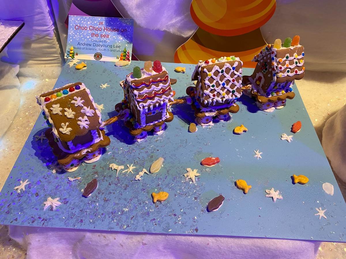 At that point we ventured back downstairs to check out the rest of the Winter Lights festival, which was adjacent to another seasonal exhibit called “The Science of Gingerbread." We got a big kick out of checking out all these amazing gingerbread house designs– there were even a few Disney-related entries!