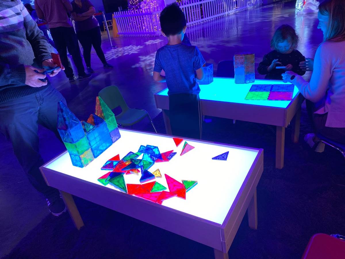 Lastly we strolled through the Winter Lights Festival area itself, which started with a light tunnel leading to other themed activities for kids and families including a crawl-through castle, interactive games, crafts, photo ops, and more.