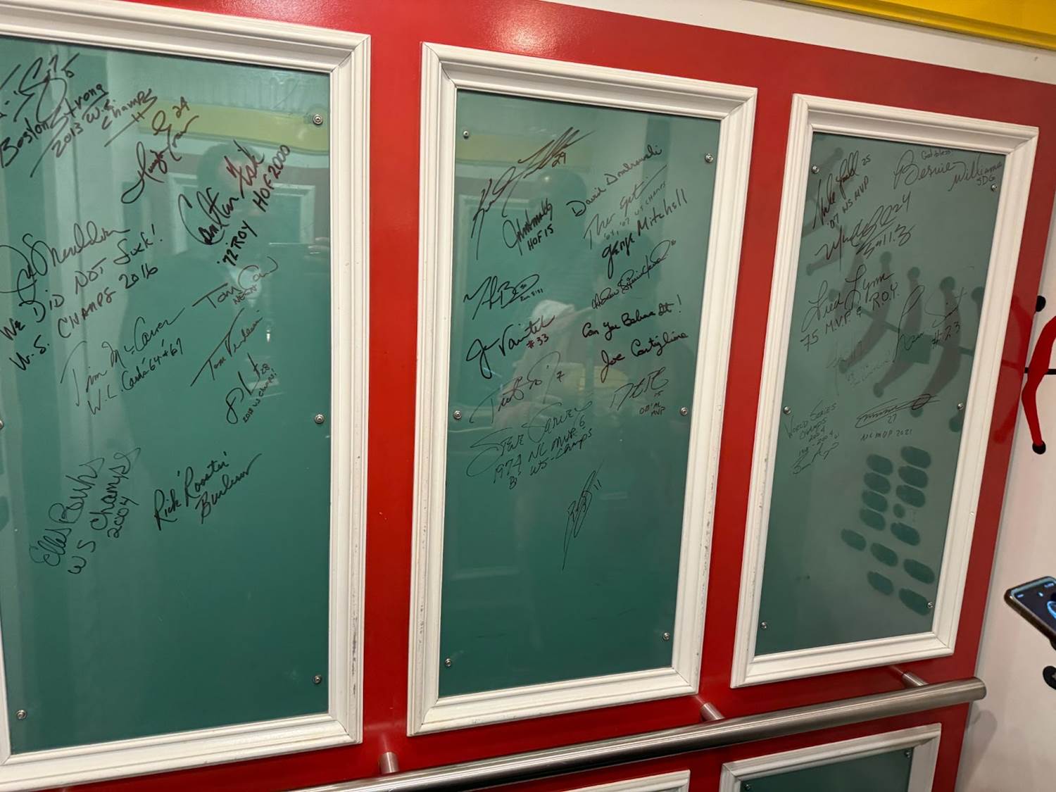 He gave us the basic information for the day and was able to answer any questions about the trip and the area. We were also gifted a publication about ESPN+’s Tom Brady: Man in the Arena. While I was getting the rundown from Mike, our room became ready and we headed upstairs. One of the four elevators is their “baseball elevator" which includes signatures from various baseball legends including David Ortiz, Peter Gammons, and even former Chairman of Disney’s Board, George Mitchell.
