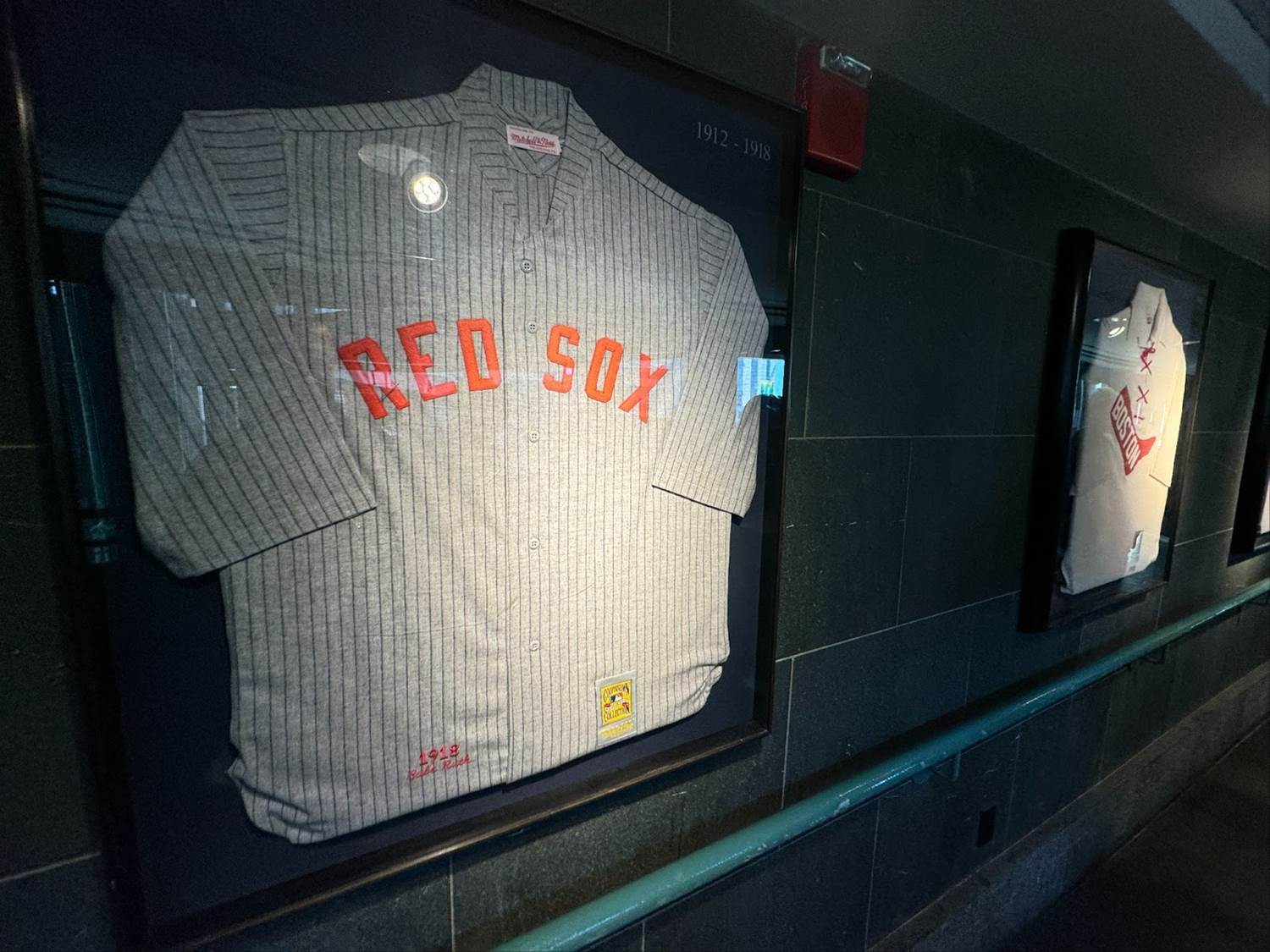 A few minutes after 4 p.m., we met in the lobby for the walk over to Fenway Park. We entered through the Ford Clubhouse and met our trio of guides who would be taking us on our tour of the ballpark. Our first stop was to the field which was quite the experience. We then headed to the oldest seats in the park to get our overview of Fenway. After our history lesson, we walked around the entire ballpark including stops at the Red Sox Hall of Fame and a display of the various Boston uniforms through the year.