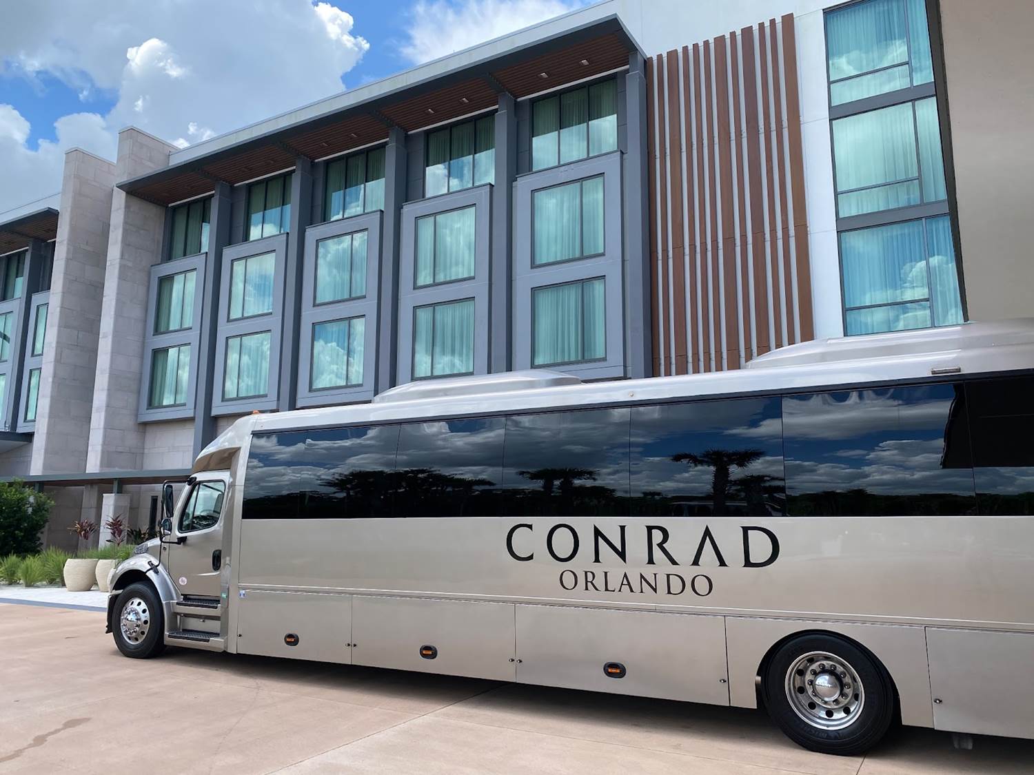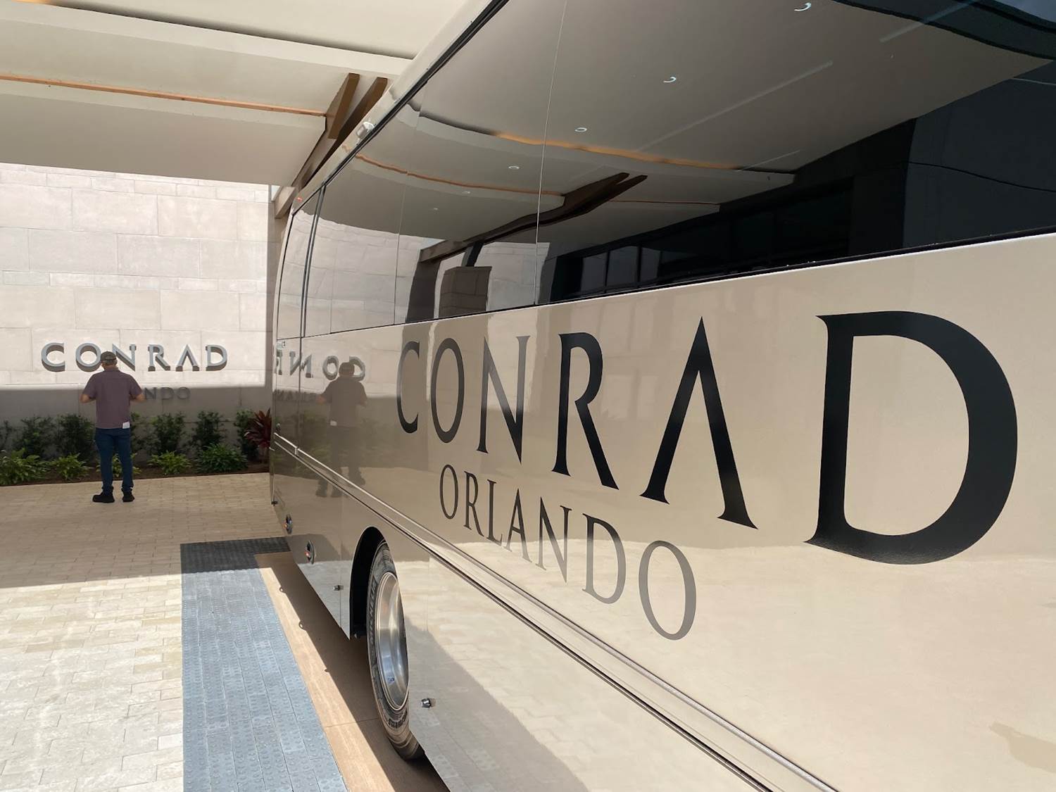 The Conrad Orlando offers an hourly luxury bus service to all four Walt Disney World theme parks.