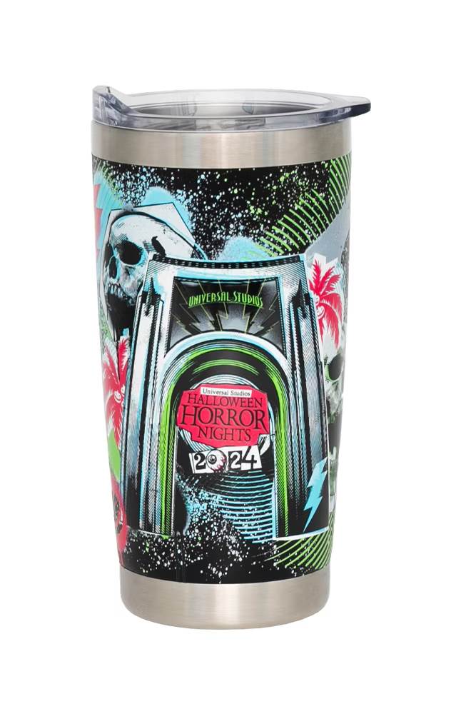- Get ready for Halloween Horror Nights 2024 with this Official HHN stainless steel travel tumbler featuring the iconic Universal archway surrounded by screaming skulls with "Horror Lives Here" across the top in a graffiti art style.