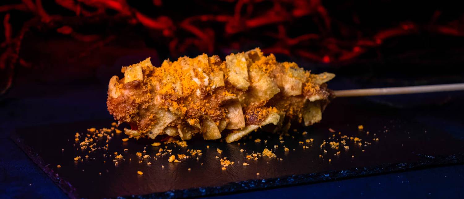 - Slimer’s Korean Corndog - Korean cheese dog with Fritos, coated with Cheetos powder, ghost pepper spice, sage derby cheese and mozzarella