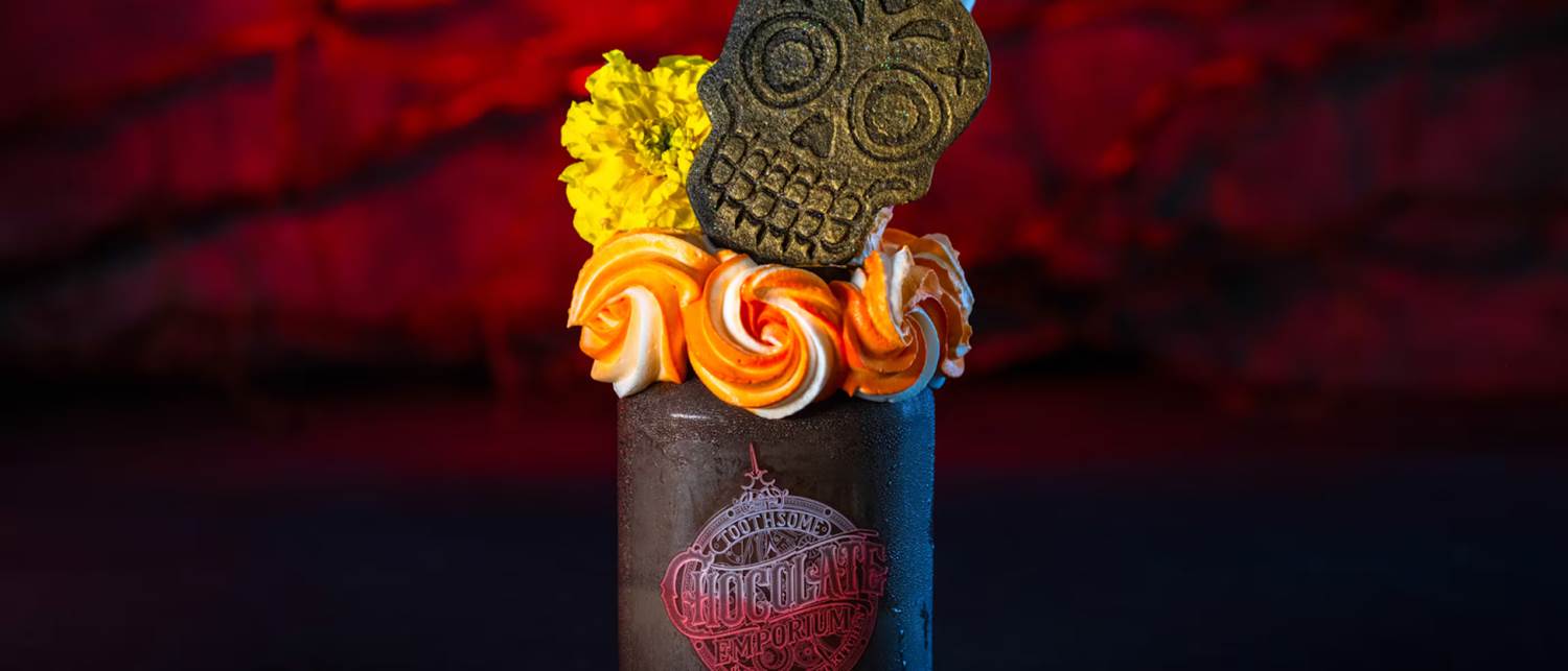 - Dia De Los Muertos Shake - Chocolate chilli ice cream shake, topped with cinnamon streusel, edible marigolds, and a chocolate sugar cookie skull.