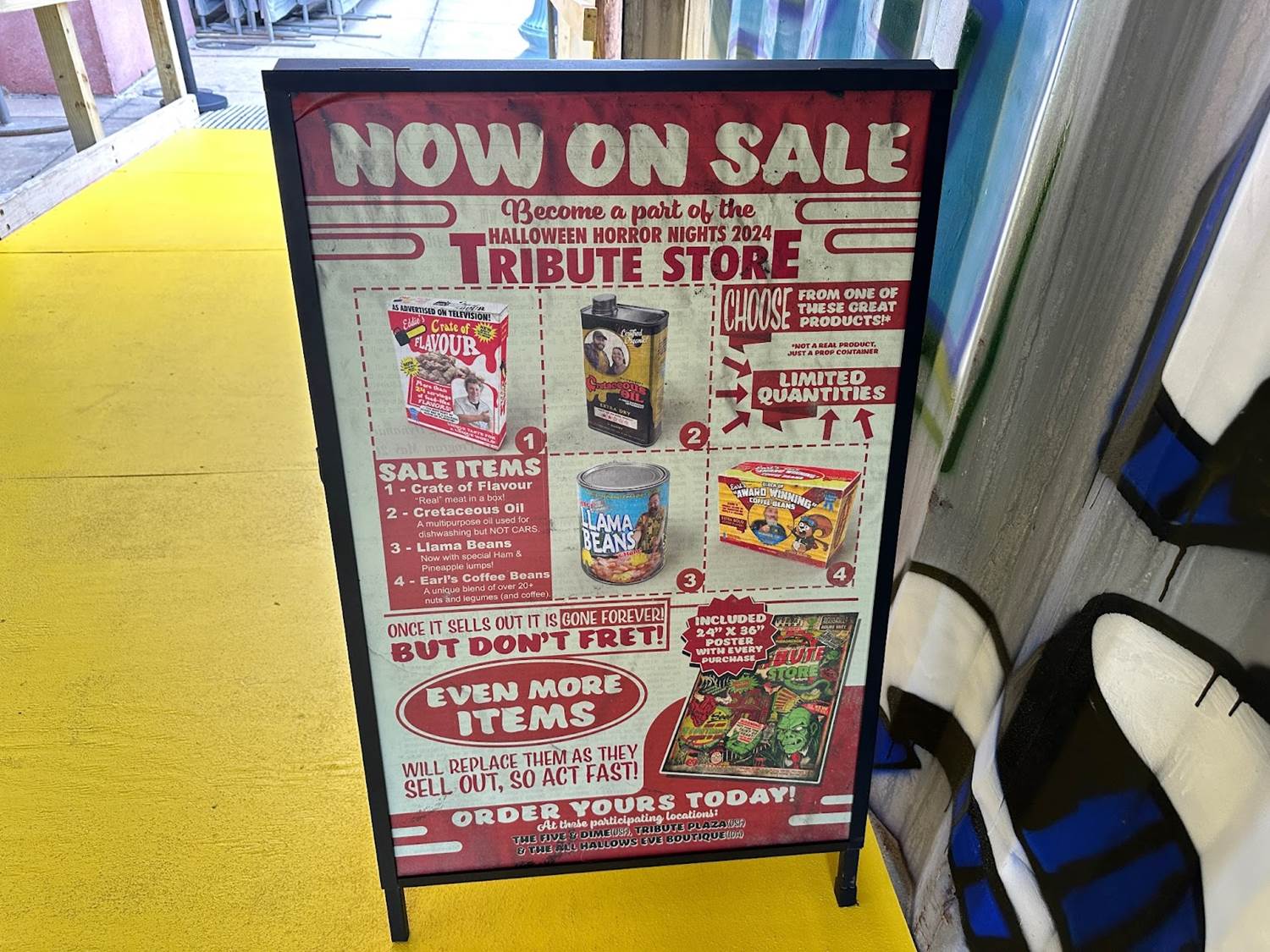 Located in the New York area of Universal Studios Florida, this year’s Tribute Store features a unique style, littered with graffiti, with guests entering through a shipping container. As is tradition, guests can pay to become a part of the Tribute Store, where they might be added to a can of Llama Beans or even Cretaceous Oil.
