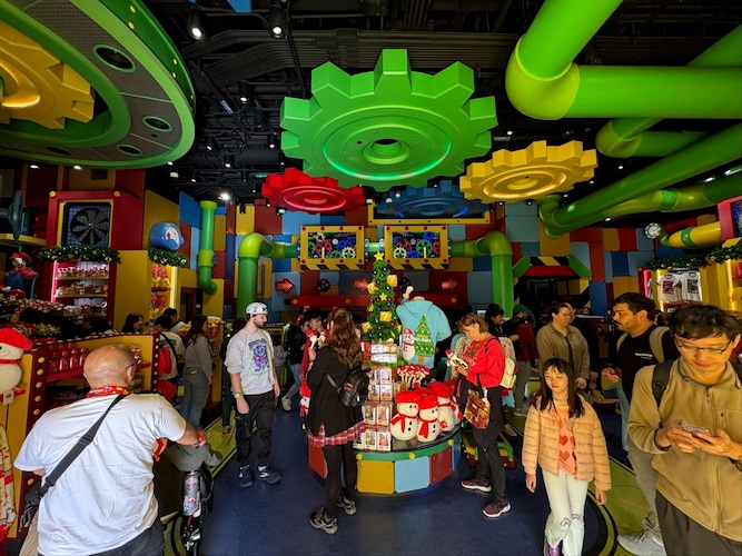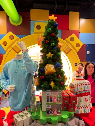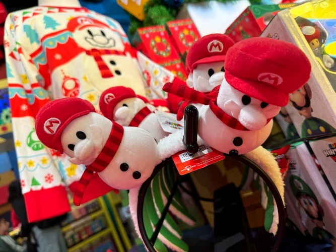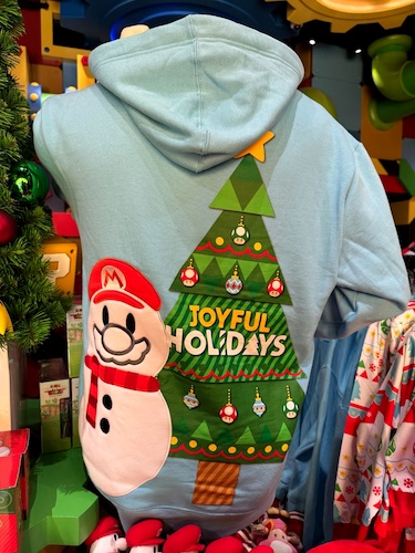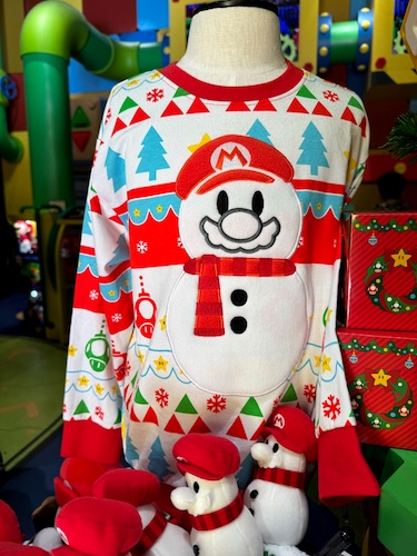 Over at the 1-UP Factory store, holiday decorations and merchandise have appeared, allowing guests a festive way to Christmas shop for their favorite Nintendo fan.