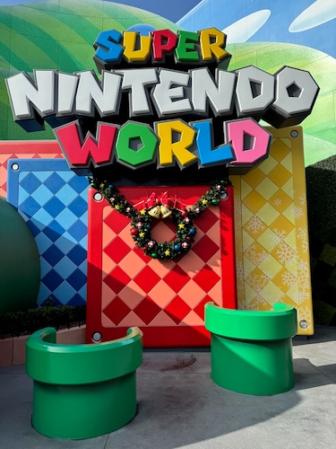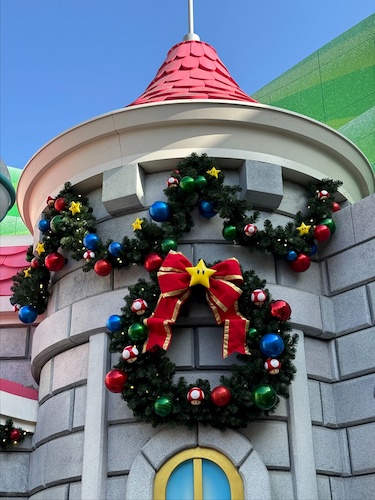 For those heading to Universal Hollywood this holiday season, Super Nintendo World has 1-UPed their Christmas spirit, decking the halls of the Mushroom Kingdom. As guests approach the warp pipe into the immersive land, they will be greeted with snowmen versions of Mario and Luigi, a Super Star Christmas tree, and the addition of a wreath and garland to the land’s entrance sign.