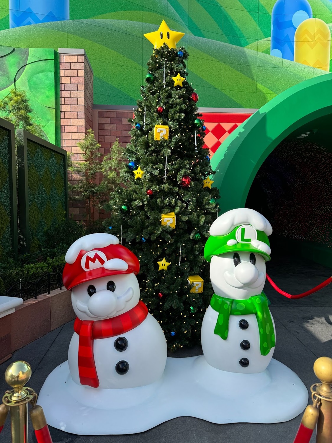For those heading to Universal Hollywood this holiday season, Super Nintendo World has 1-UPed their Christmas spirit, decking the halls of the Mushroom Kingdom. As guests approach the warp pipe into the immersive land, they will be greeted with snowmen versions of Mario and Luigi, a Super Star Christmas tree, and the addition of a wreath and garland to the land’s entrance sign.
