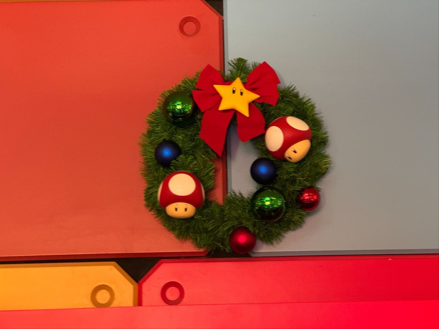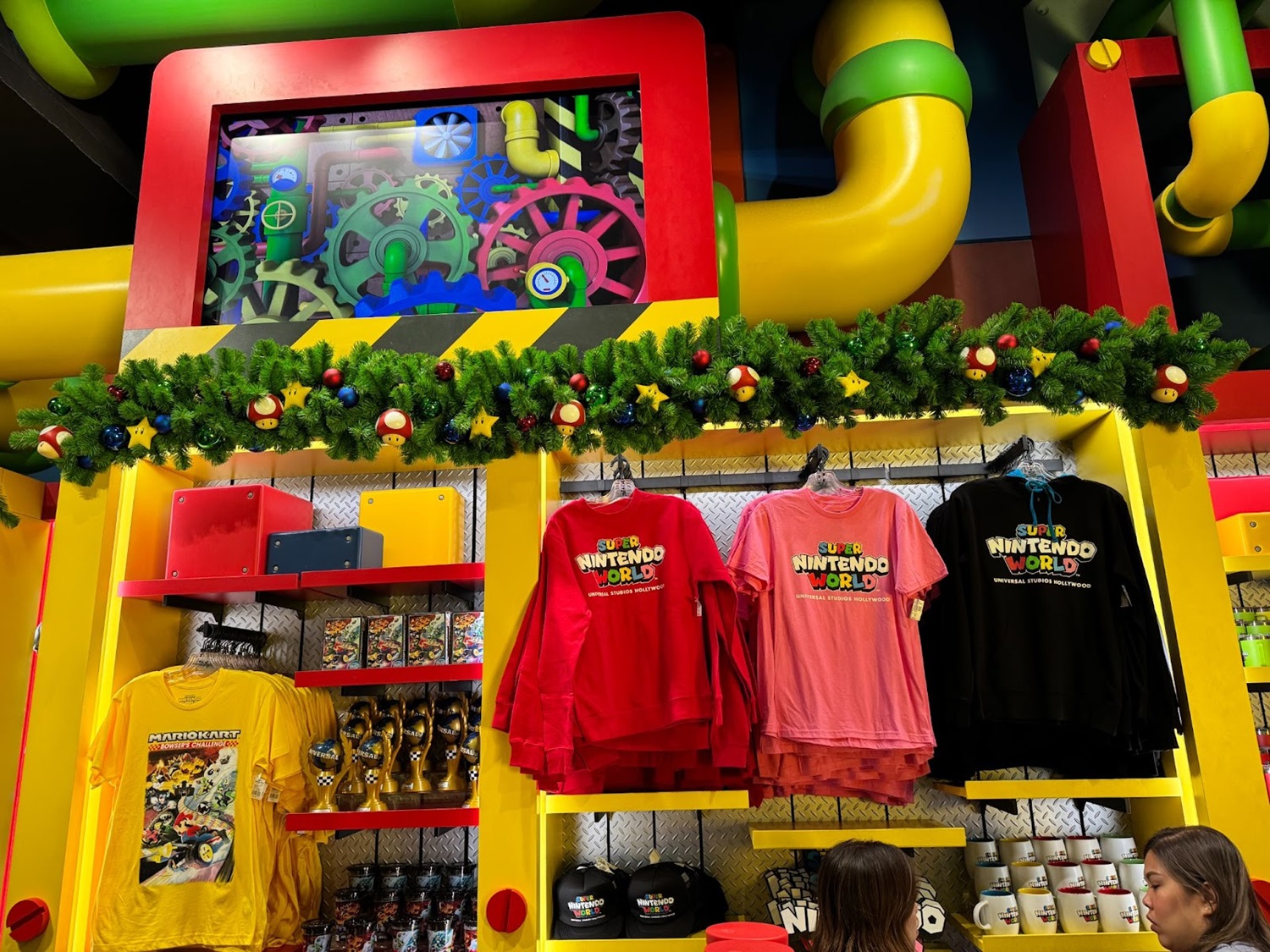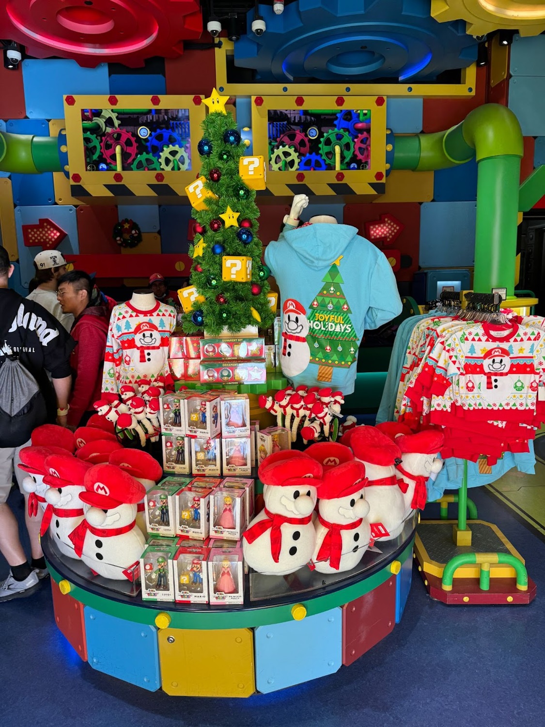 Over at the 1-UP Factory store, holiday decorations and merchandise have appeared, allowing guests a festive way to Christmas shop for their favorite Nintendo fan.