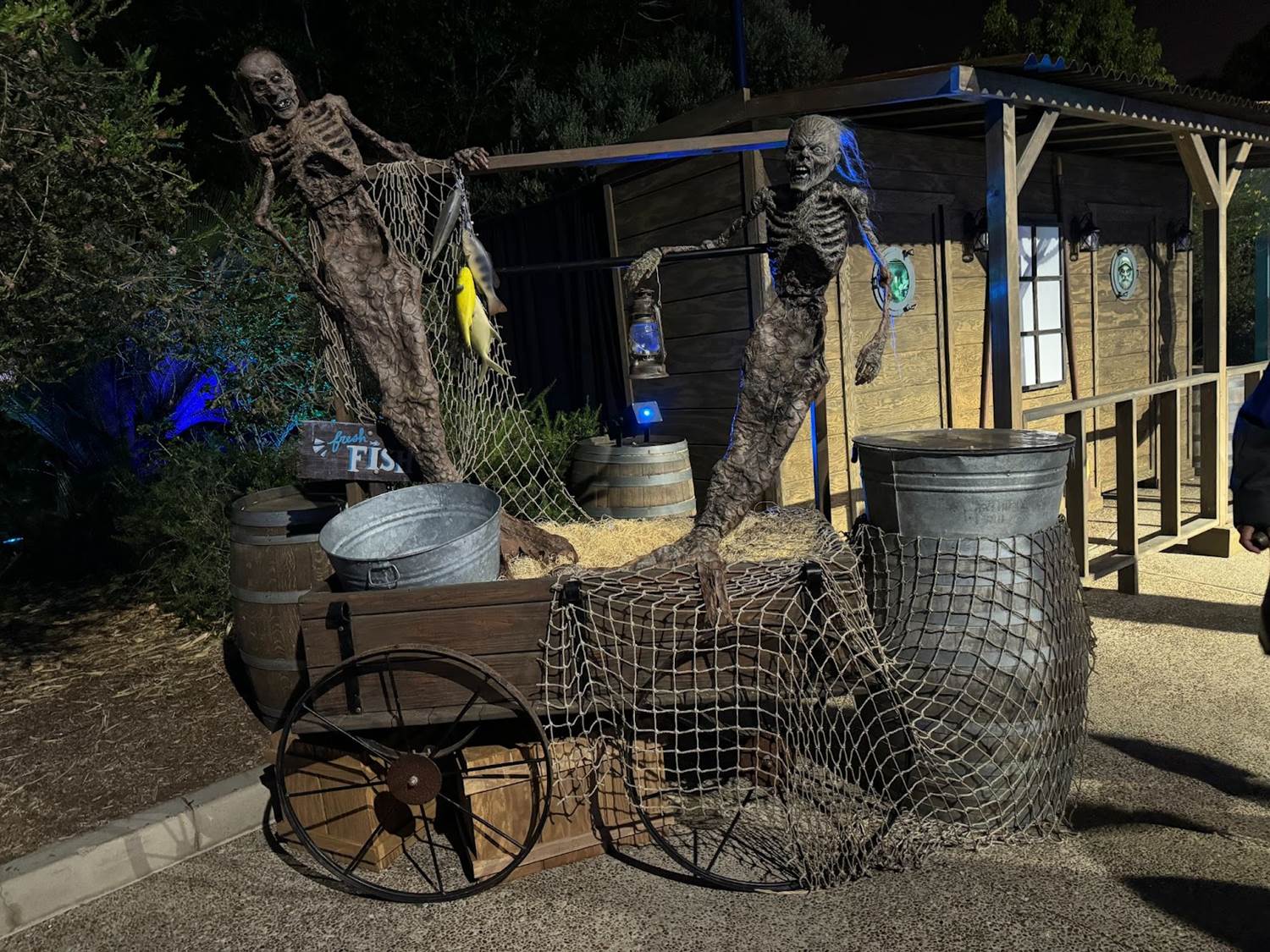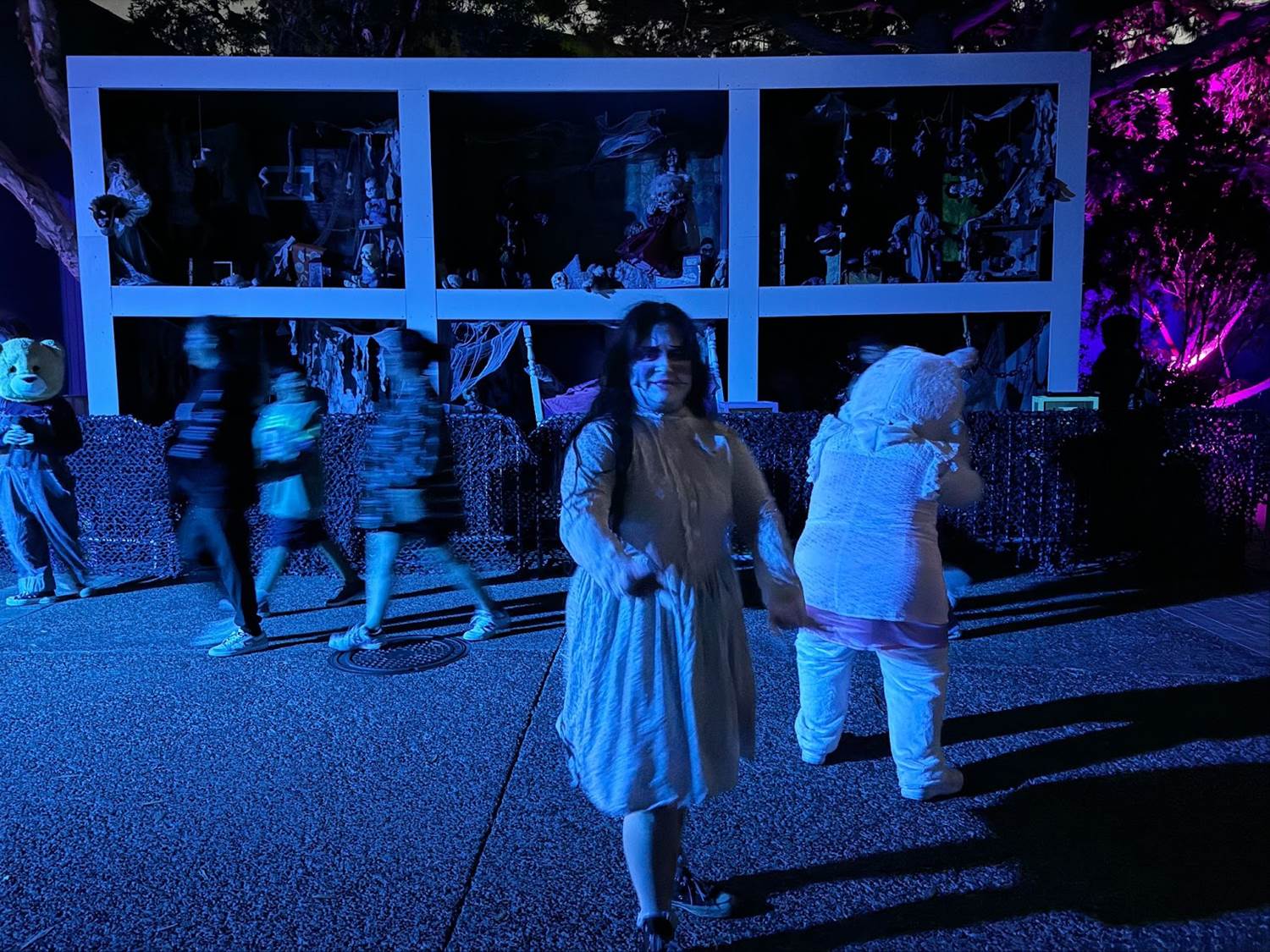 After the “Opening Scaremony" and in-between haunted houses, we wandered around the park exploring its multiple Scare Zones and interacting with the many characters that populate the paths of SeaWorld San Diego during the Howl-O-Scream event.
