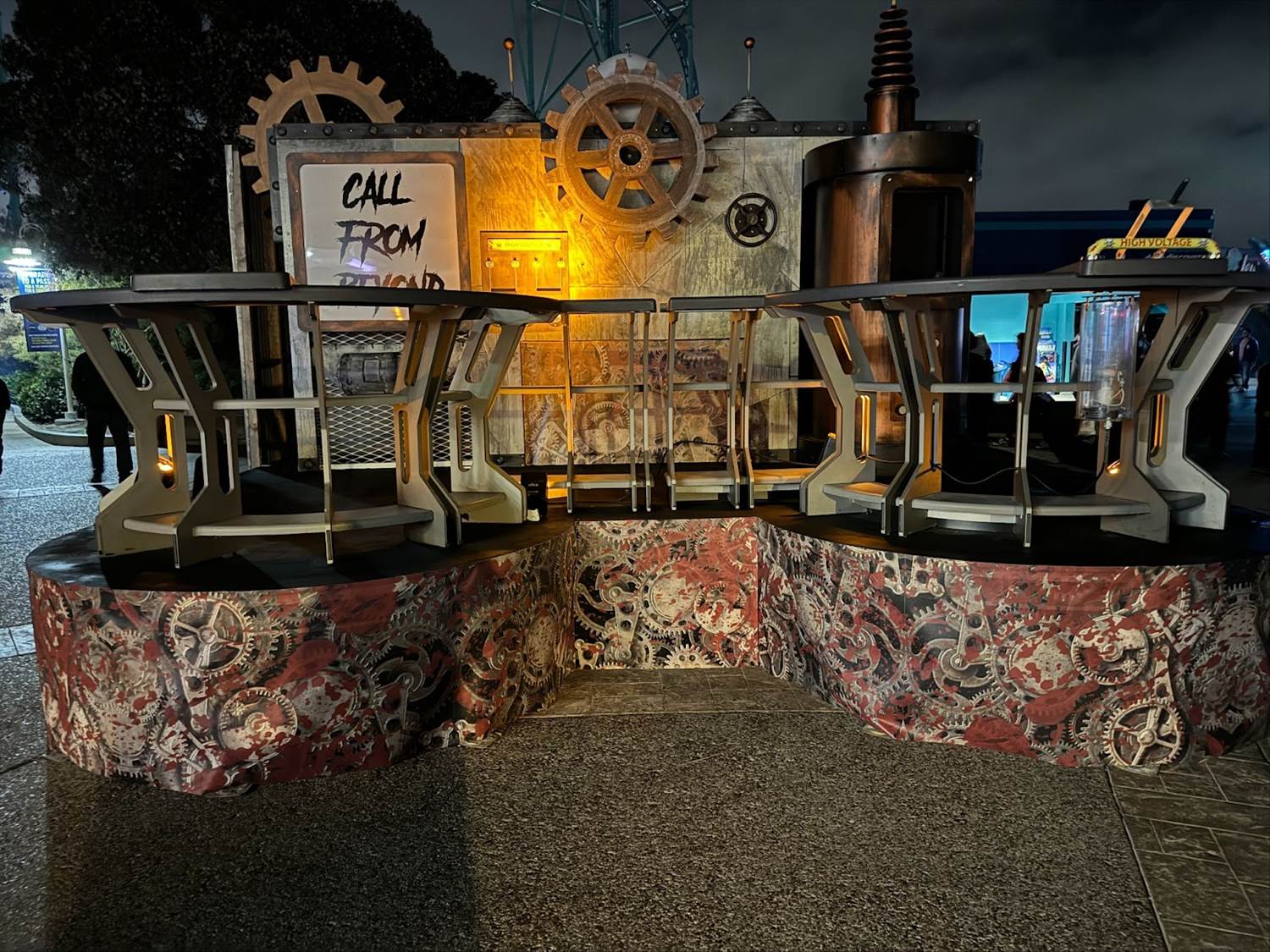 As with most of these Halloween haunt-style events at theme parks around the country, the main attraction at Howl-O-Scream is the haunted houses– of which there are five this year, each with their own updated effects and committed performers: Simon’s Slaughterhouse, Death Water Bayou, Area 64: Alien Outbreak, Nightmare Experiment, and Circus of the Damned (in 3D).