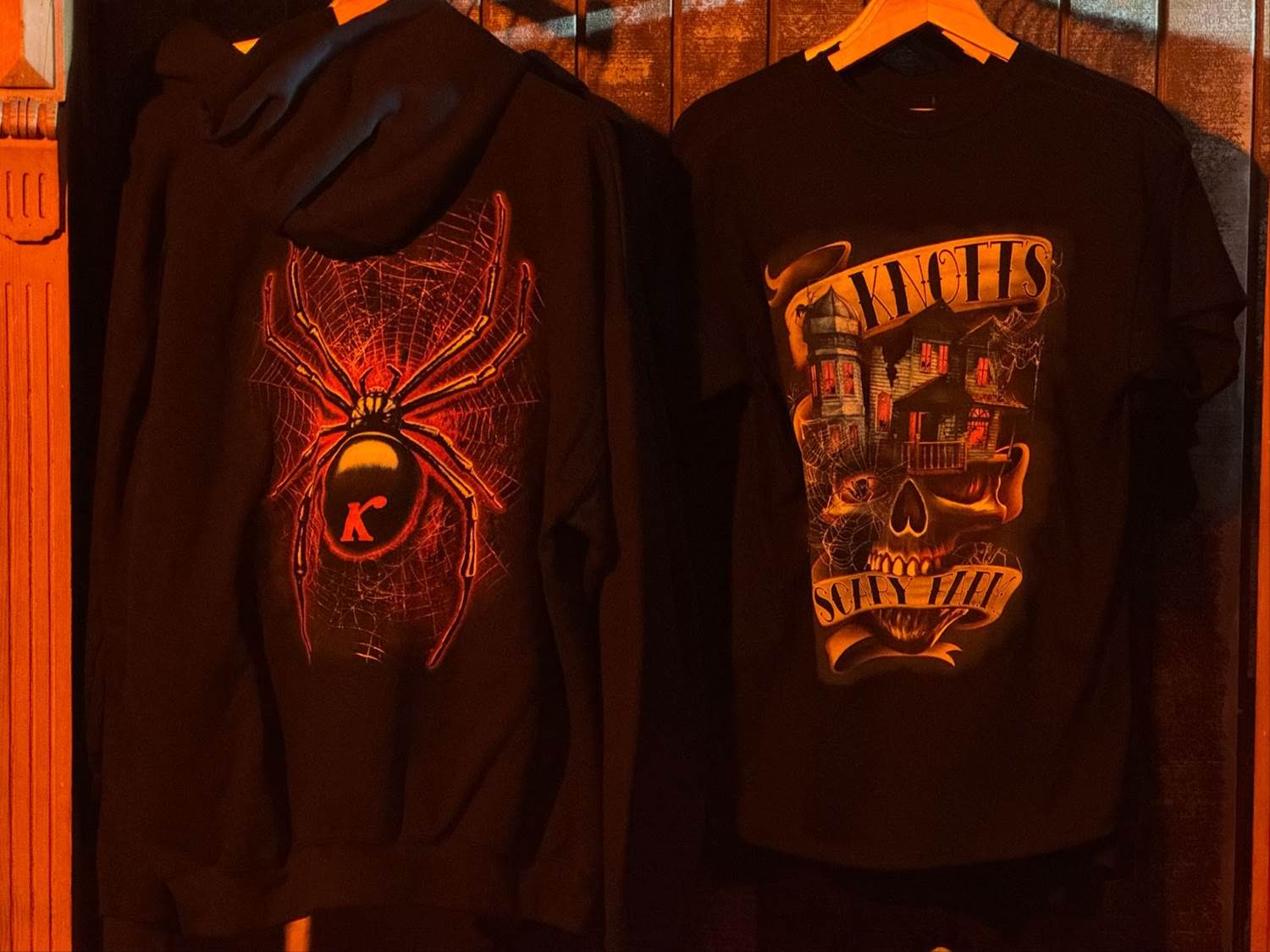 Some of the fun merchandise available around Knott’s Scary Farm this year includes a cat-shaped light-up “No Boo" necklace, the second generation of the park’s Interactive Lantern, and a variety of apparel themed to the event.