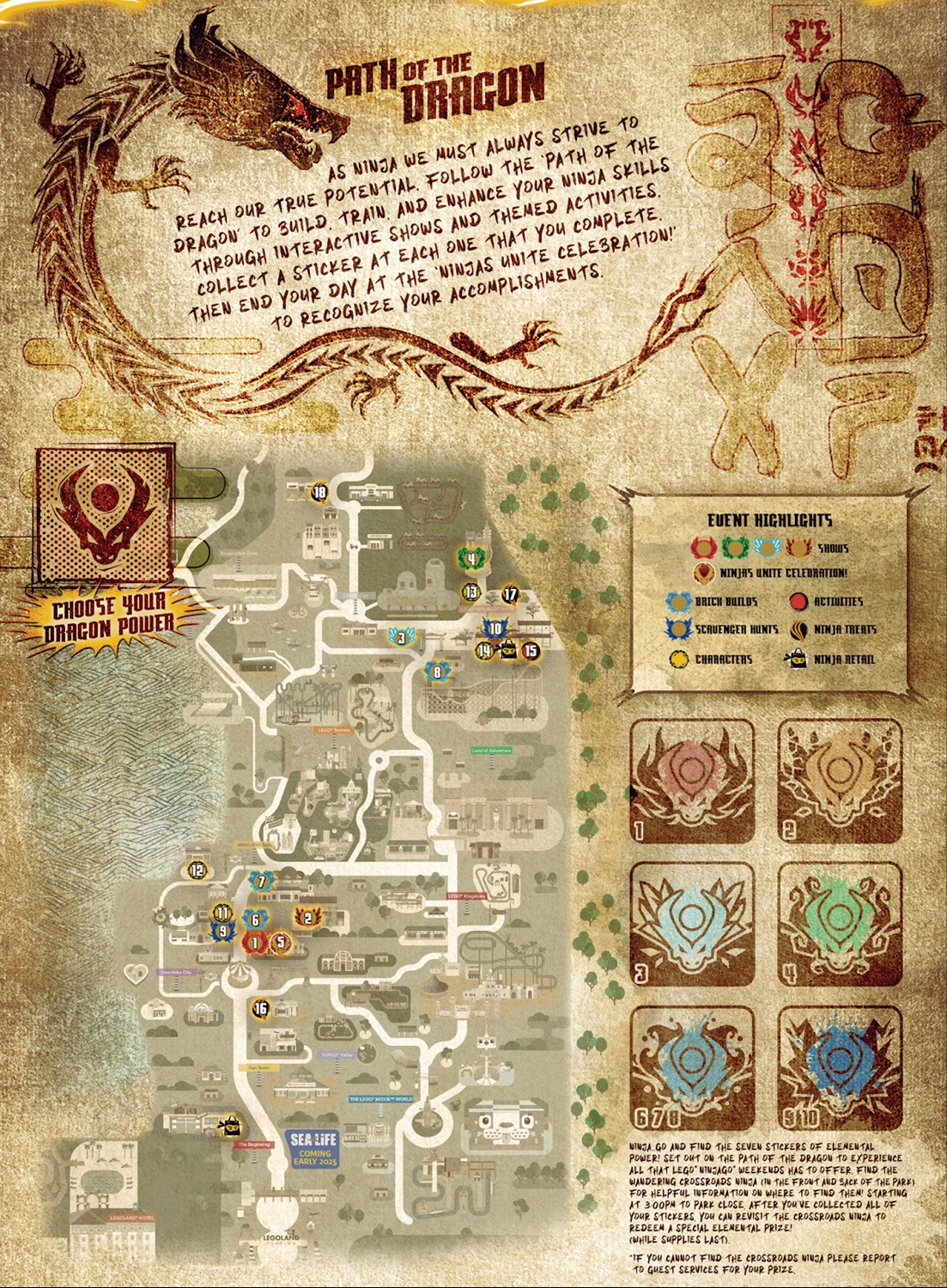 The quest to reach true ninja potential starts as soon as guests enter the park with the Path of the Dragon event guide activity. Guests will begin their day by choosing the elemental dragon power they are striving to master as they embark on the Path of the Dragon to enhance their skills. As guests participate in themed activities and interactive shows throughout the park, they will receive elemental stickers to complete the Path of the Dragon and reach their true ninja potential.