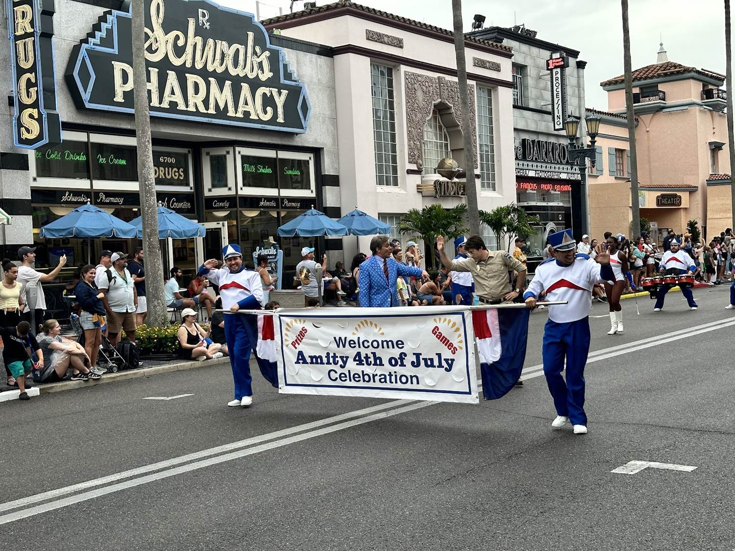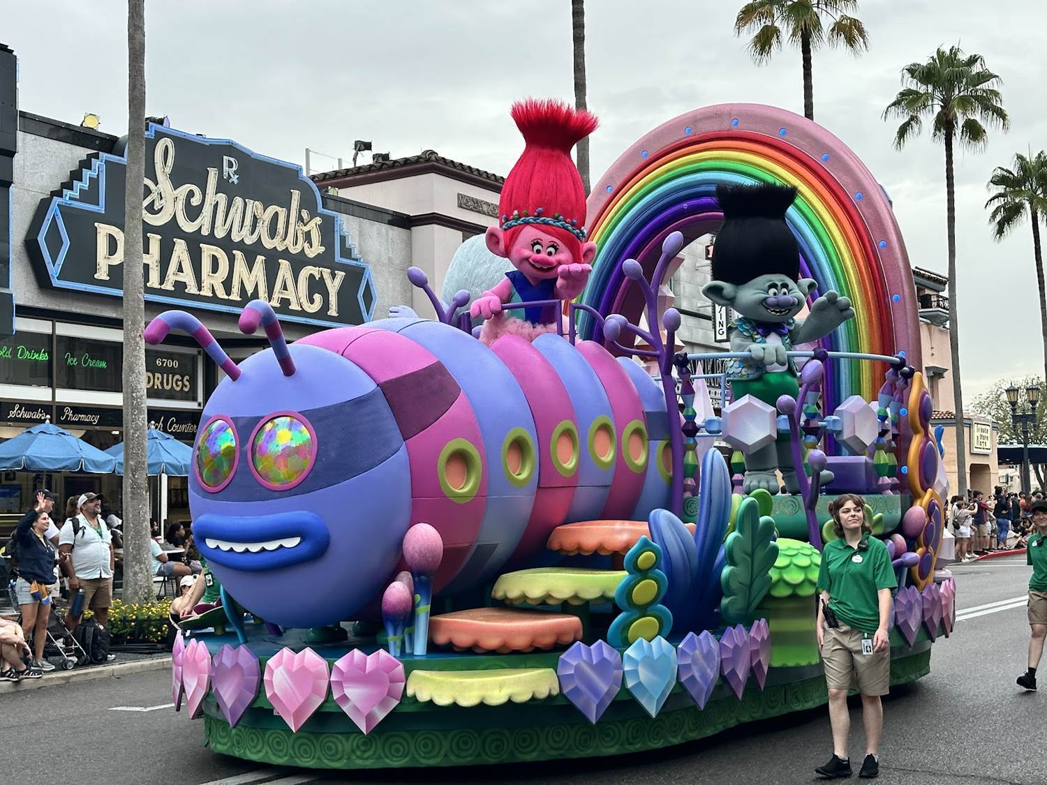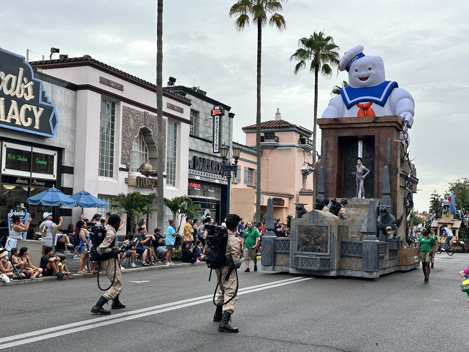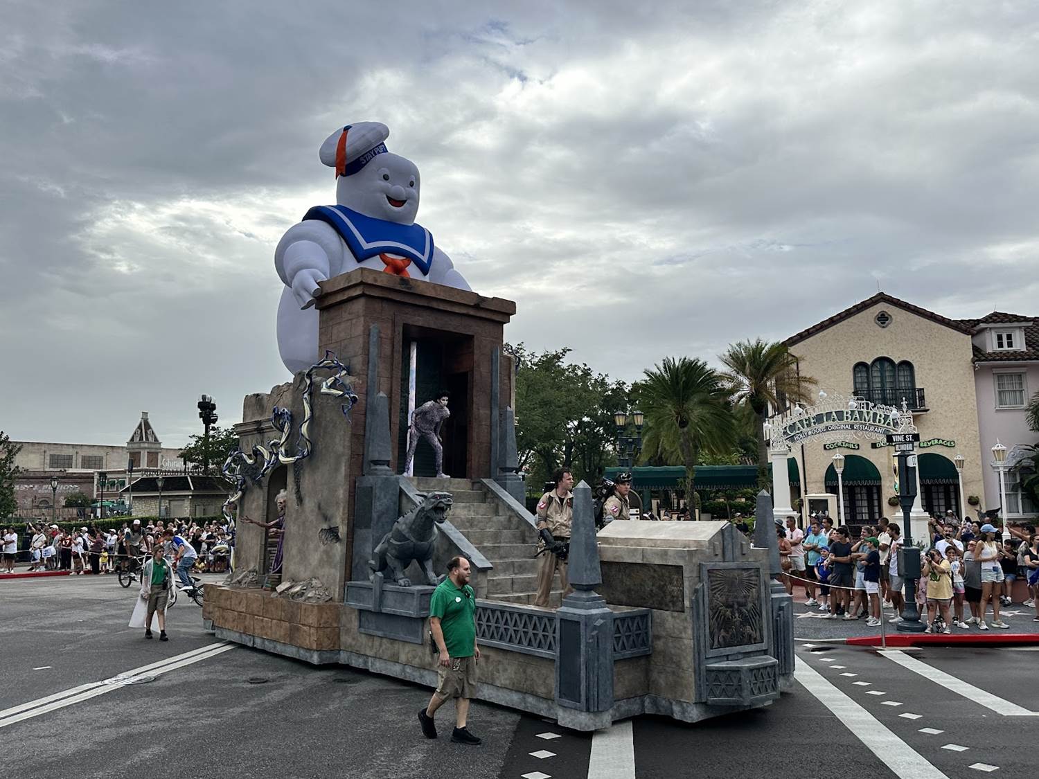 - Guests will watch in awe as they see the massive 16-foot Stay Puft Marshmallow Man atop the Ghostbusters float, the colorful Caterbus and giant rainbows on the vibrant Trolls float, a live marching drumline perform the iconic movie score of Jaws alongside a float themed to the film, and – for the epic finale – a Gyrosphere, Raptors and the fierce Tyrannosaurus Rex aboard the Jurassic World float – and so much more.