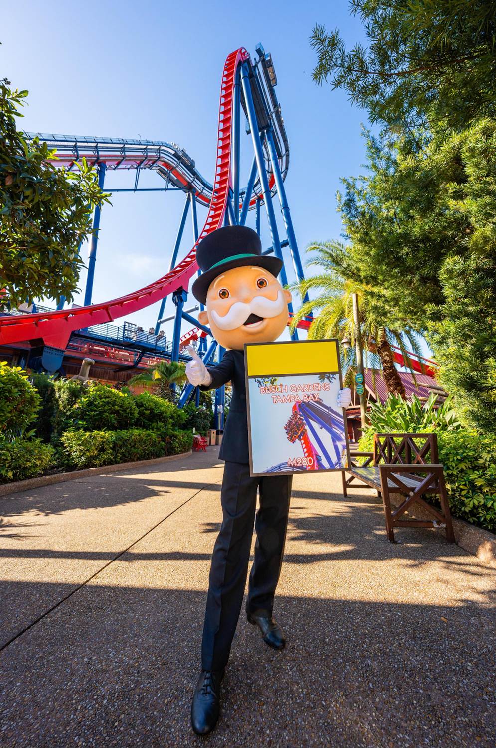 - Busch Gardens shared a series of photos of Mr. Monopoly around the park with the new Monopoly game.