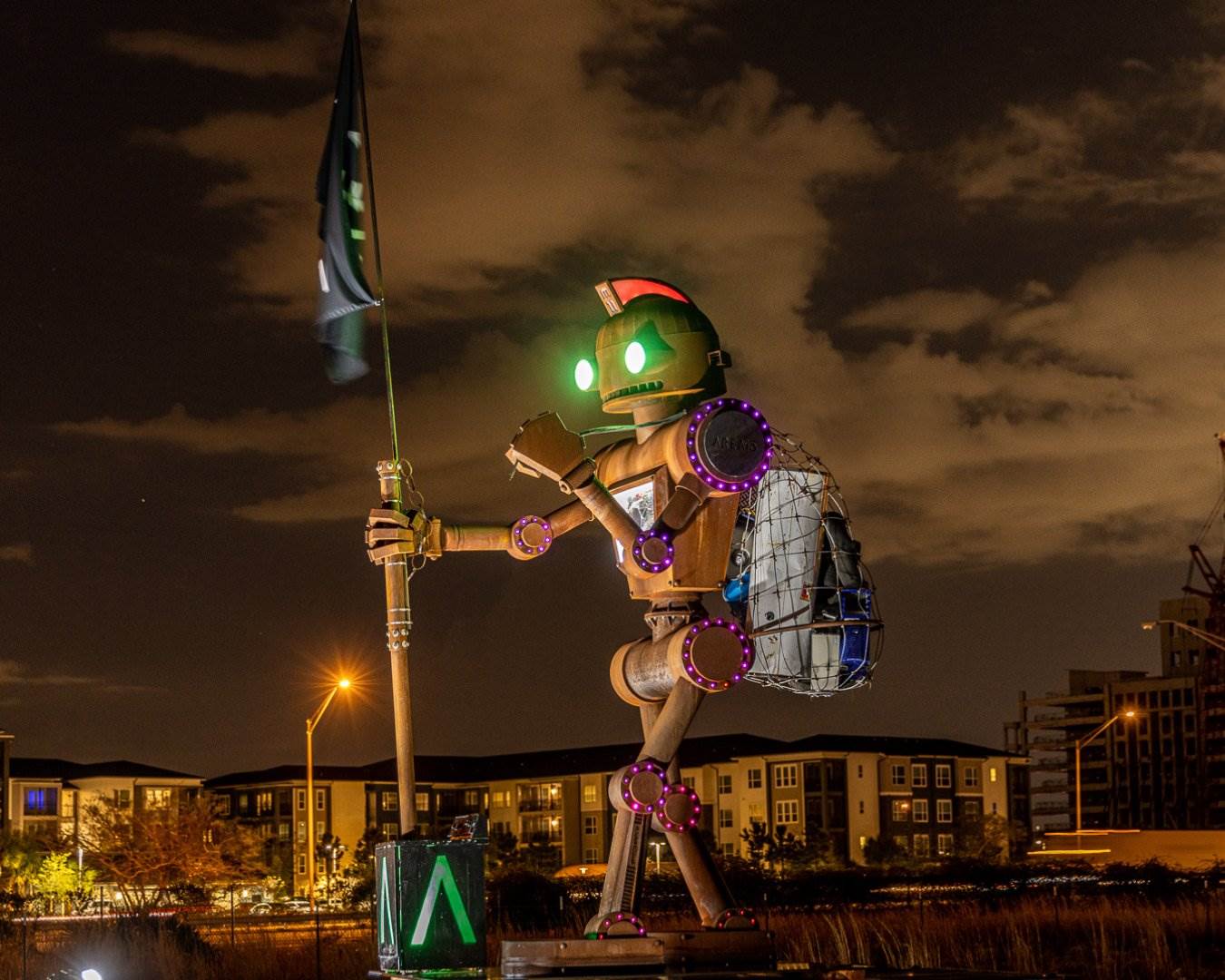 - This week, the robot statue was removed and replaced with a for sale sign. While the current listing does not include an asking price, the Orange County Property Appraiser valued the land at $23 million.